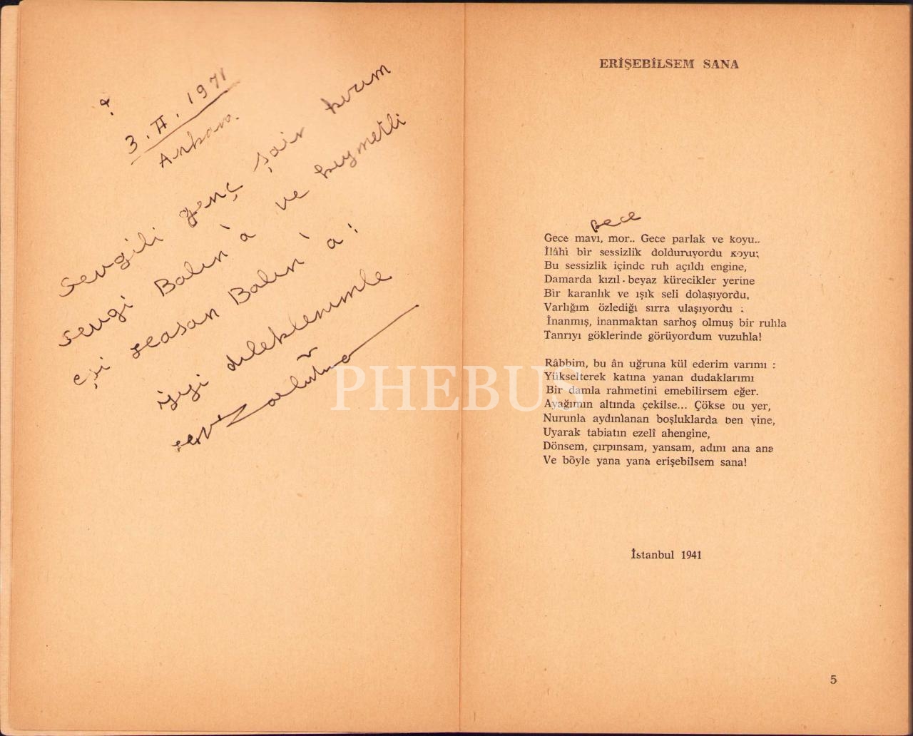 Halide Nusret Zorlutuna'dan İthaflı ve İmzalı Ellerim Bomboş -Şiirler-, İlk Baskı, 1967