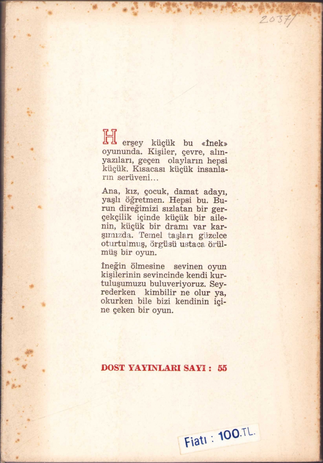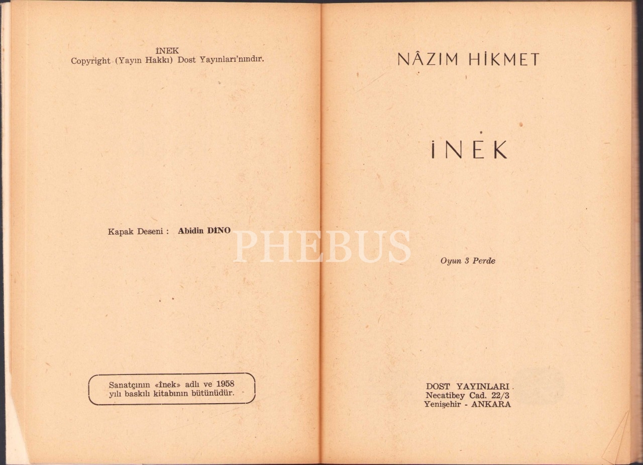 İnek, Nazım Hikmet, Dost Yayınları, Güzel İstanbul Matbaası - Aralık 1965, Kapak Deseni: Abidin Dino