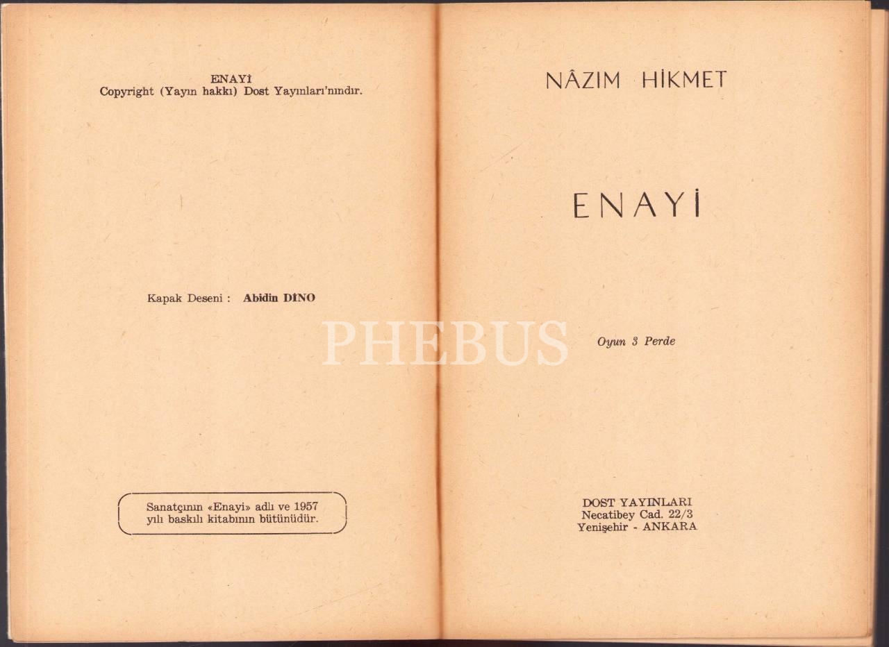 Enayi, Nazım Hikmet, Dost Yayınları, Güzel İstanbul Matbaası - Ekim 1965, Kapak Deseni: Abidin Dino