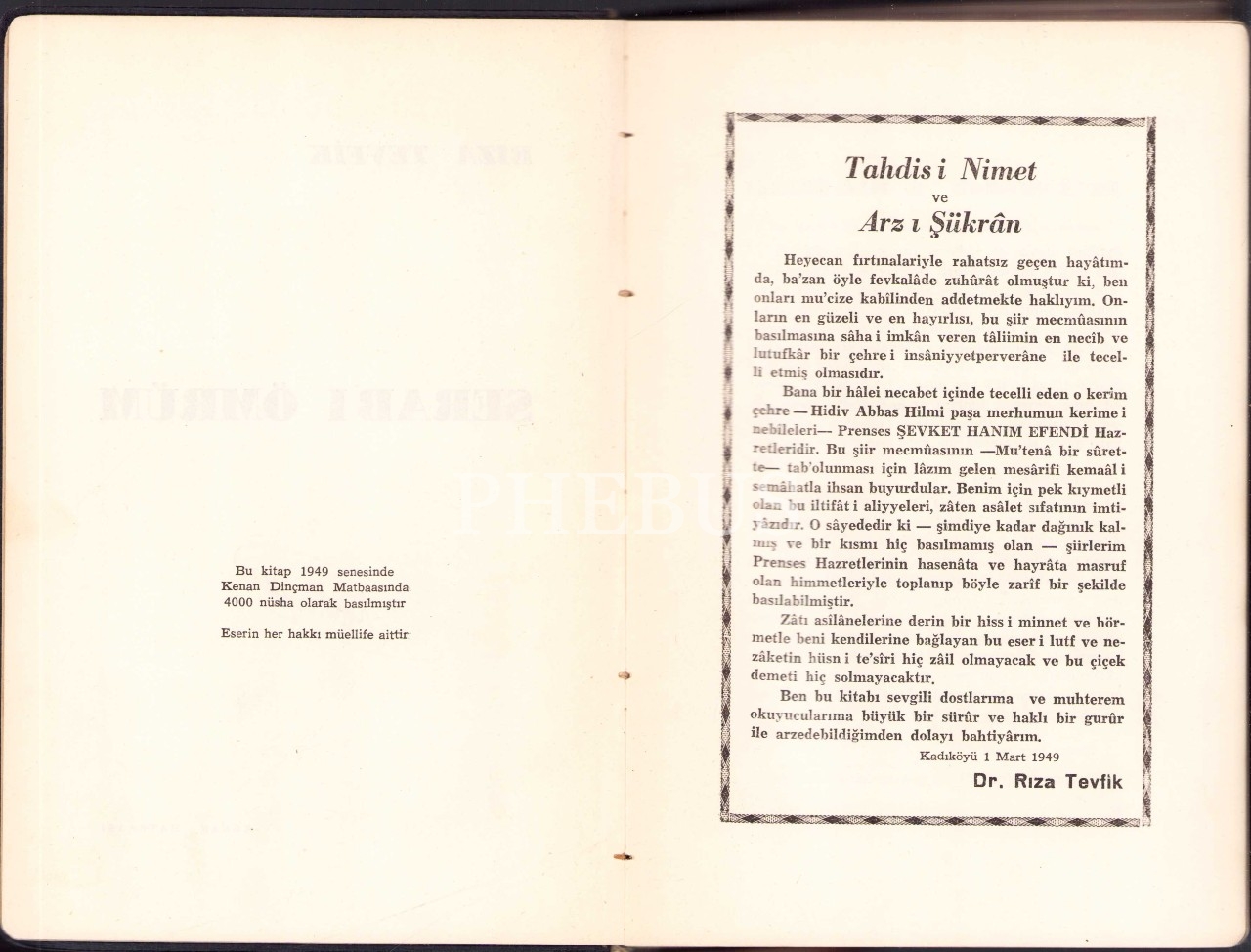 Serab-ı Ömrüm [Şiirler], Rıza Tevfik, Bölükbaşı, Kenan Matbaası, 1949