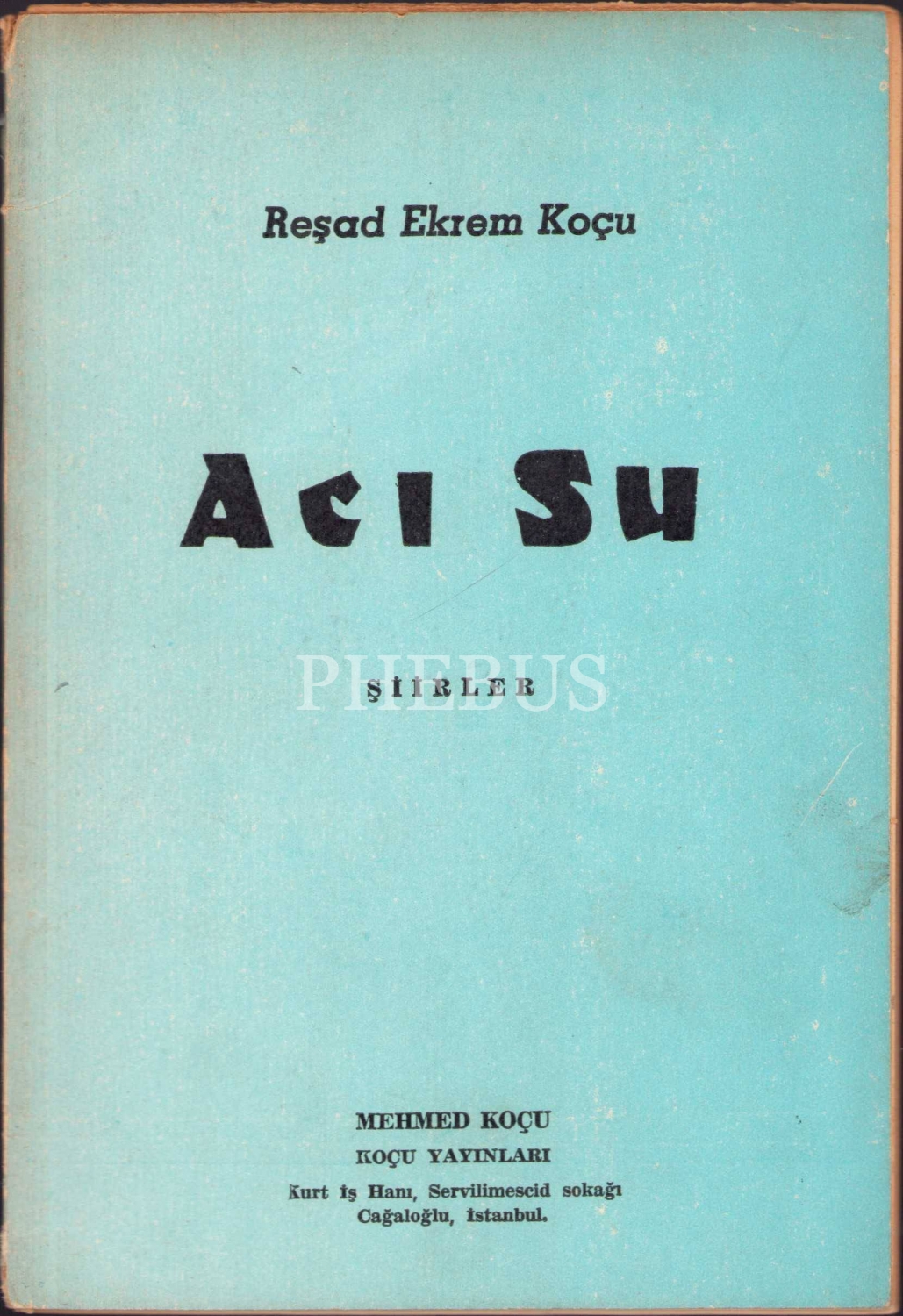 Reşad Ekrem Koçu'dan İthaflı ve İmzalı ''Acı Su'' (Şiirler), Mehmed Koçu - Koçu Yayınları, İstanbul 1965, bazı sayfalar sırttan ayrılmış