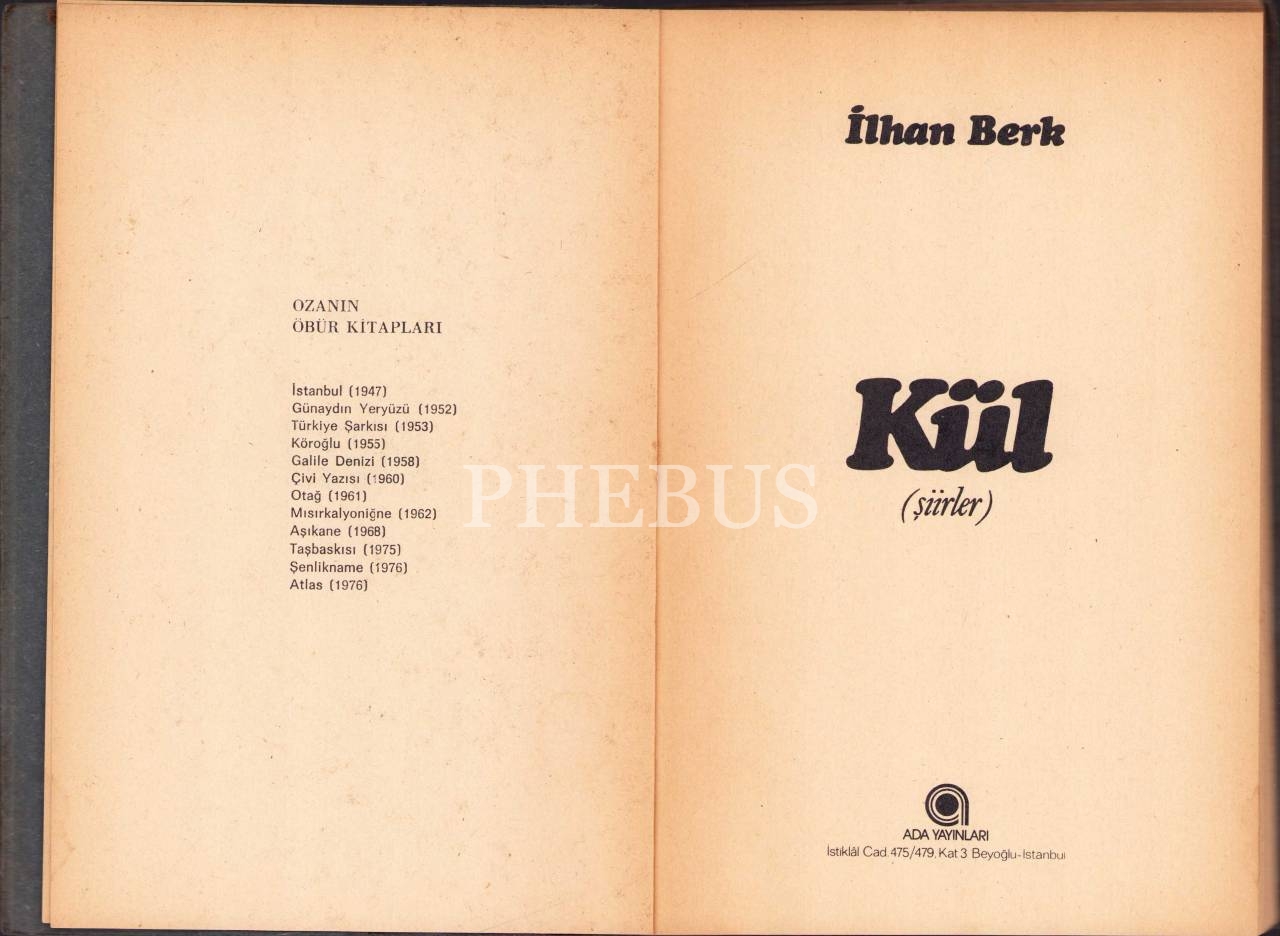 Kül (Şiirler), İlhan Berk, Ada Yayınları, Ekim 1979 - İstanbul