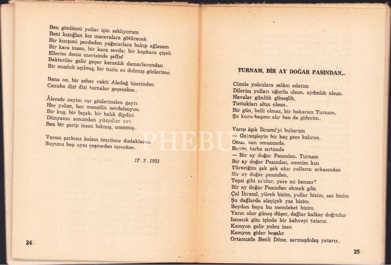 Türkiyem (Nurullah Ataç'ın Önsözü İle), Turgut Uyar, Varlık Yayınları, Şubat 1952