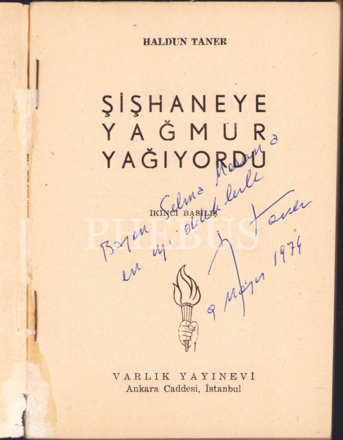 Şişhaneye Yağmur Yağıyordu, Haldun Taner'den İthaflı ve İmzalı, Varlık Yayınları, Kasım 1955
