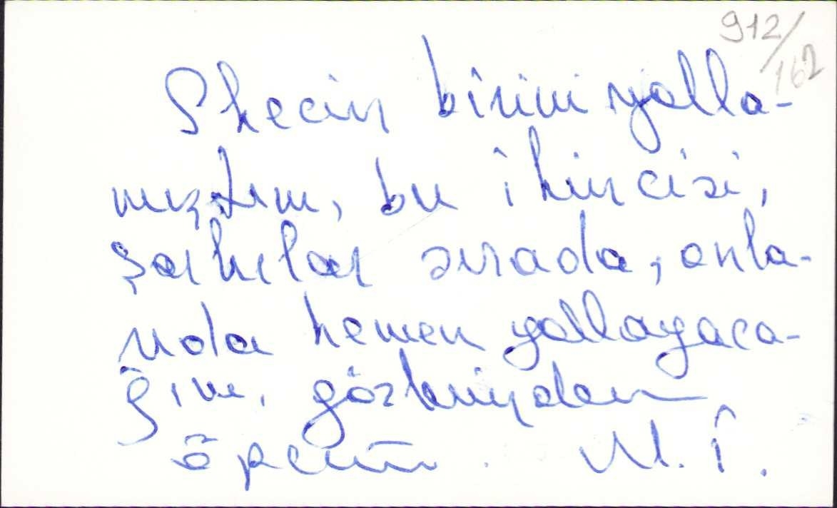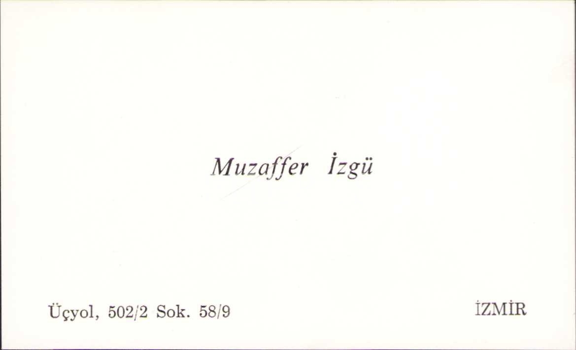 Muzaffer İzgü Kartviziti, arka yüzüne Muzaffer İzgü tarafından not düşülmüş, 10x6 cm