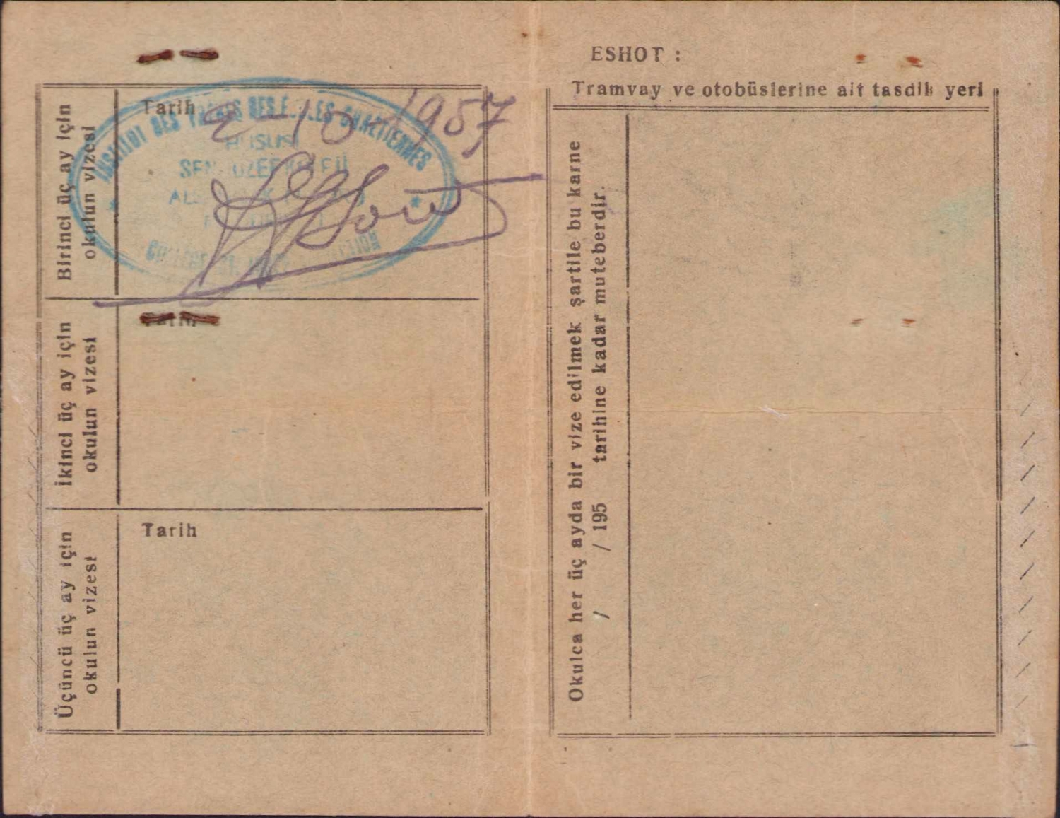 TC. İzmir Saint Josef Okulu Öğrenciye Mahsus Hüviyet Varakası, 1957 tarihli, pullu, 8x12,5cm