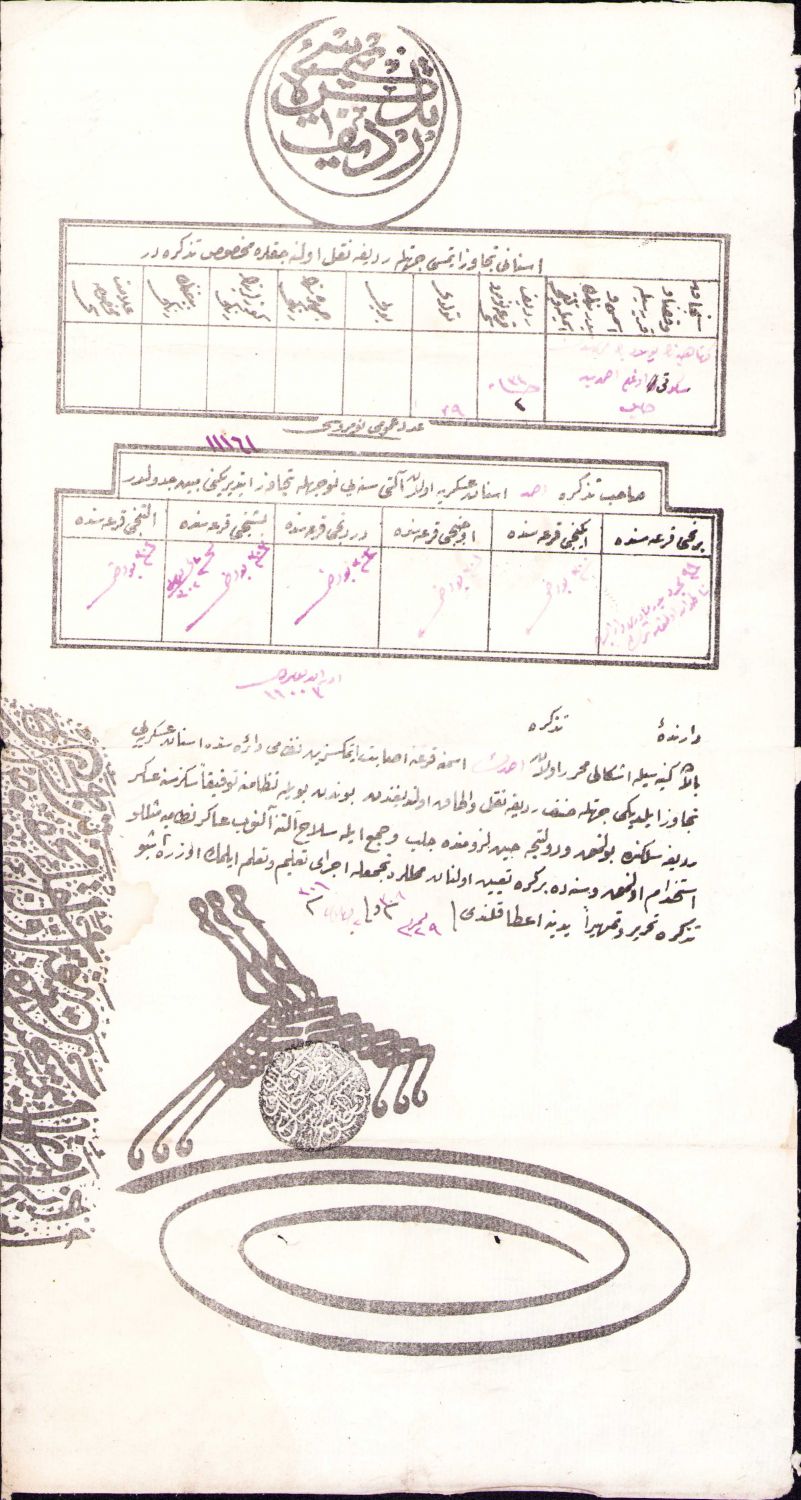 Osmanlıca Enver Paşa pençe mühürlü redif tezkiresi, 1301 tarihli, 20x37 cm