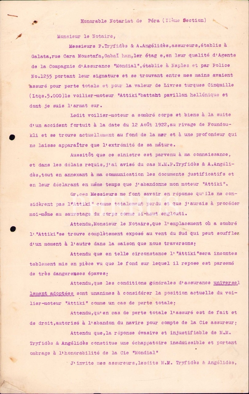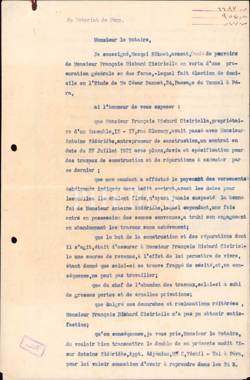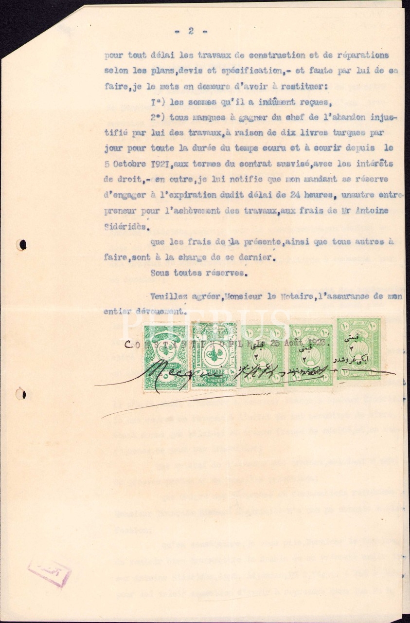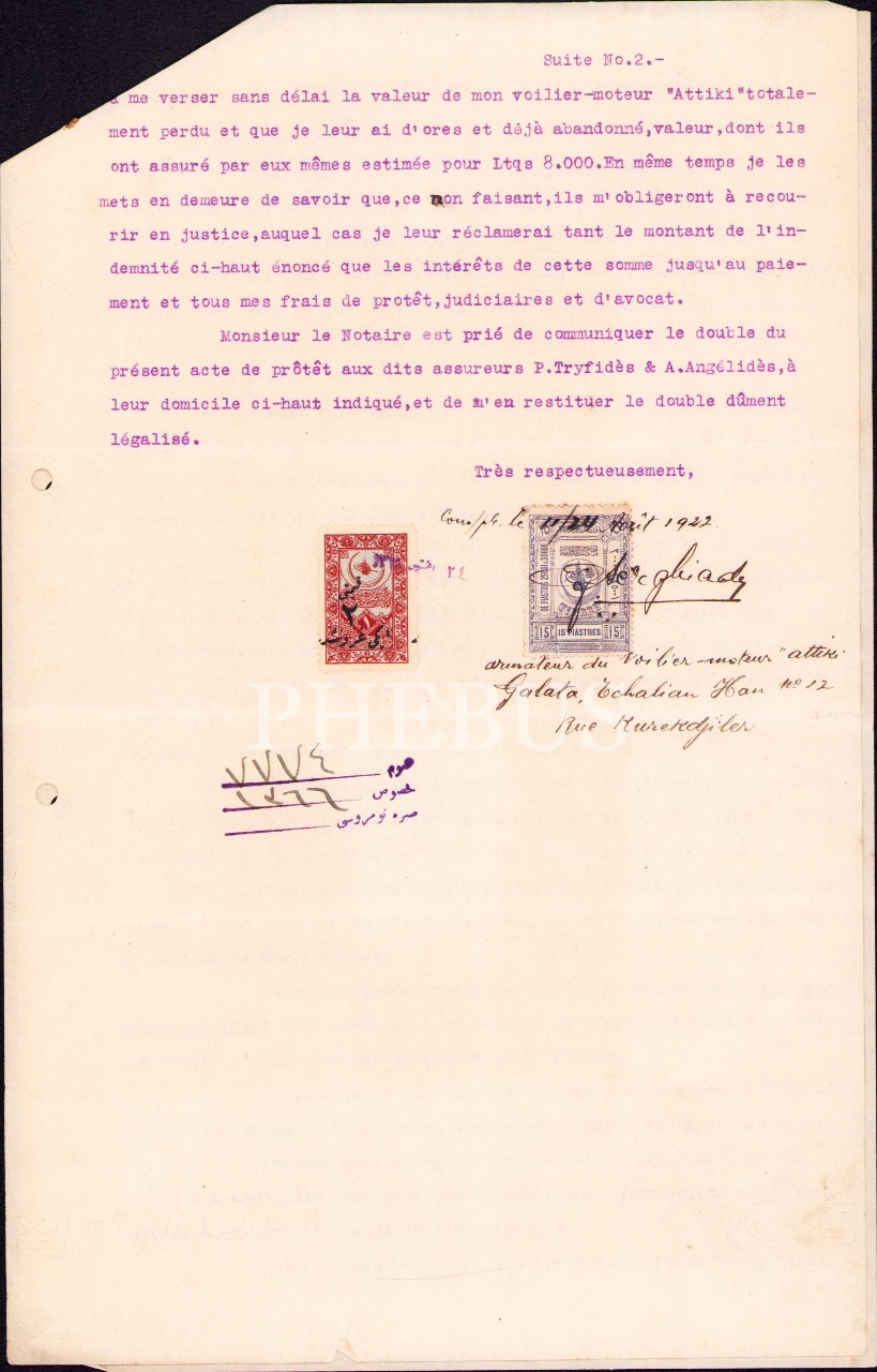 Pera Noterine hitaben yazılan 2 adet Fransızca evrak, 1922 ve 1923 tarihli, 22x33 cm