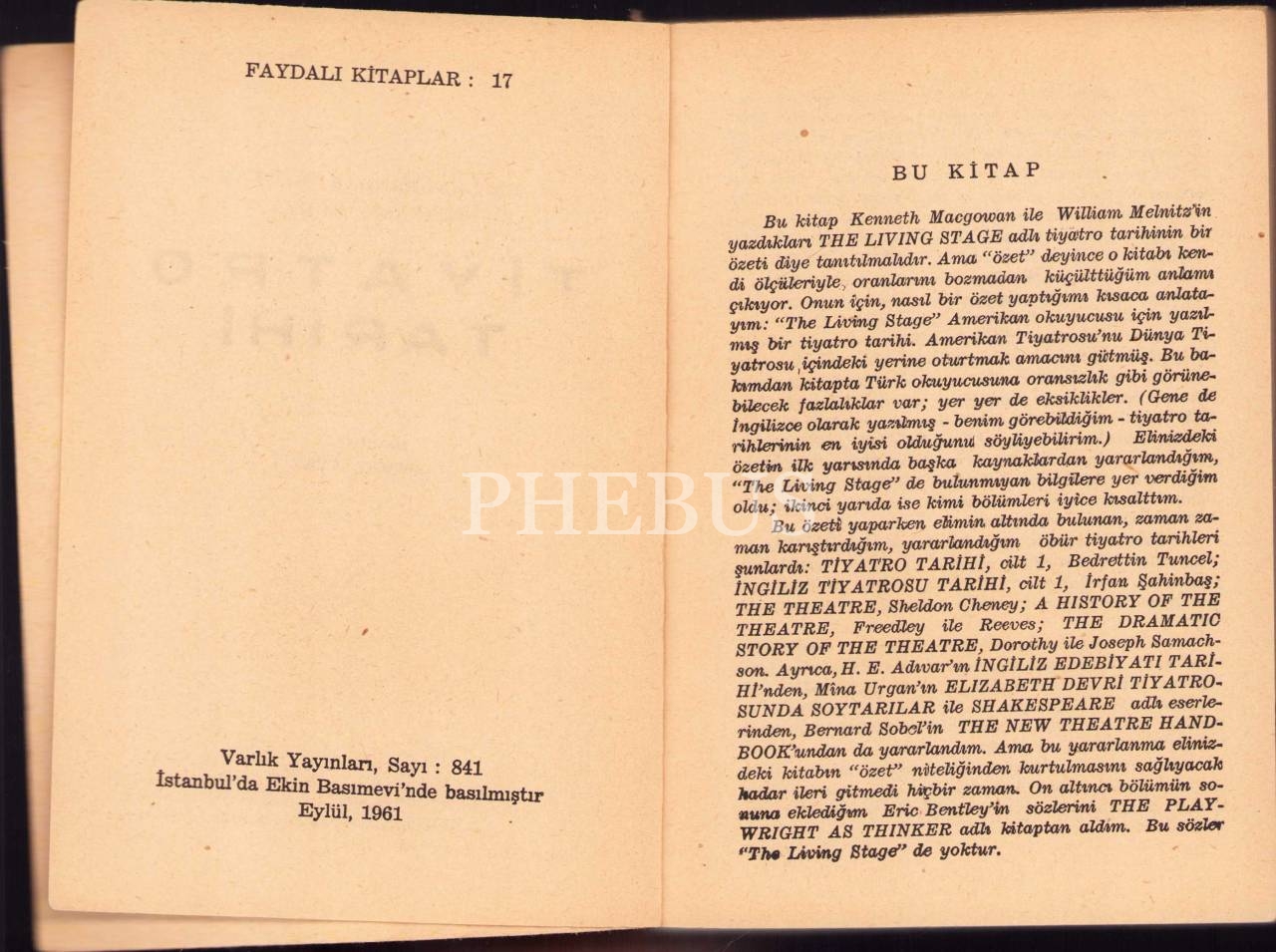 Tiyatro Tarihi (Başlangıcından Bugüne Türk ve Dünya), Hazırlayan: Memet Fuat, Varlık Yayınları, Eylül 1961