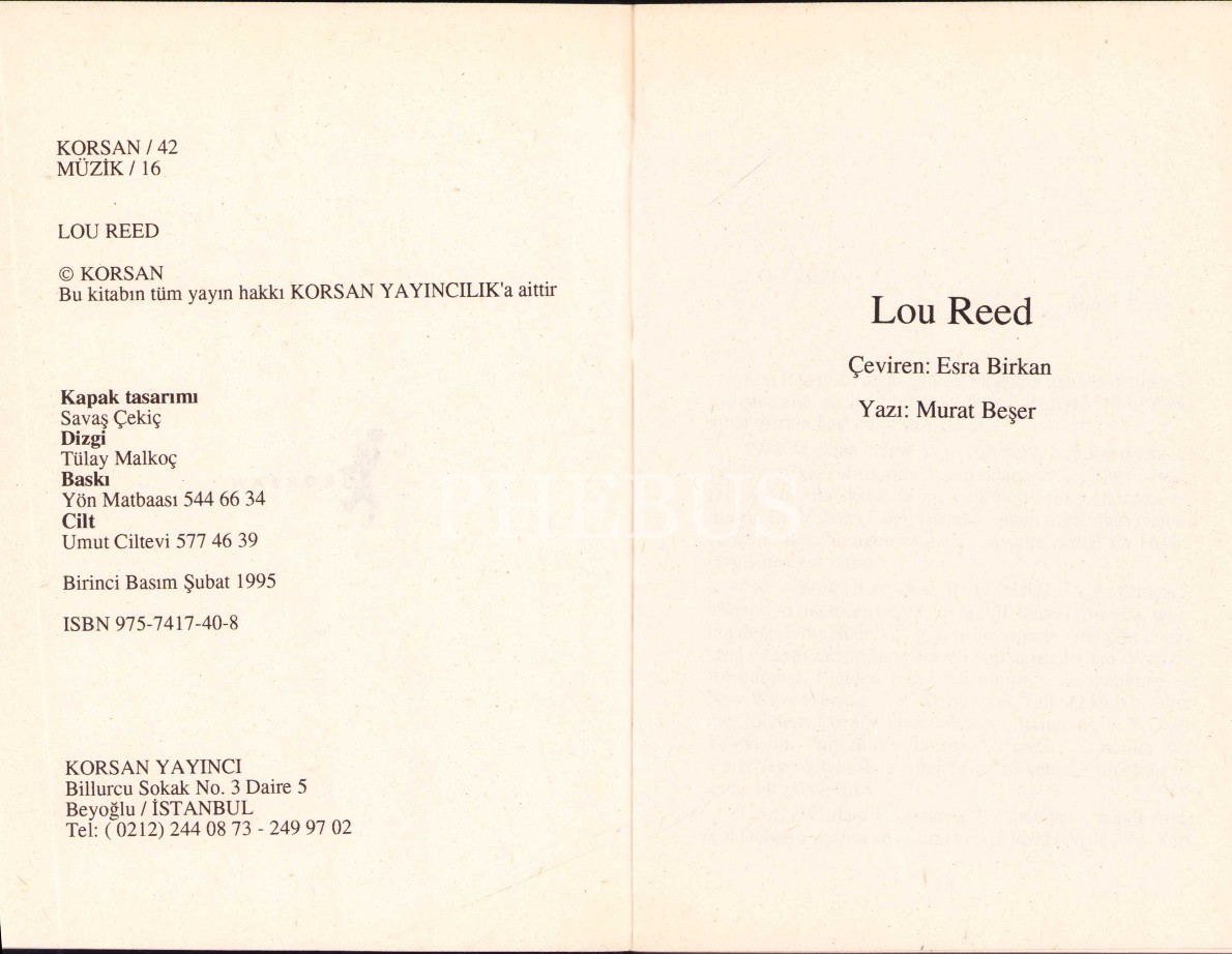 Lou Reed, Çeviren: Esra Birkan - Yazı: Murat Beşer, Korsan Yayıncılık, 1. Baskı: Şubat 1995