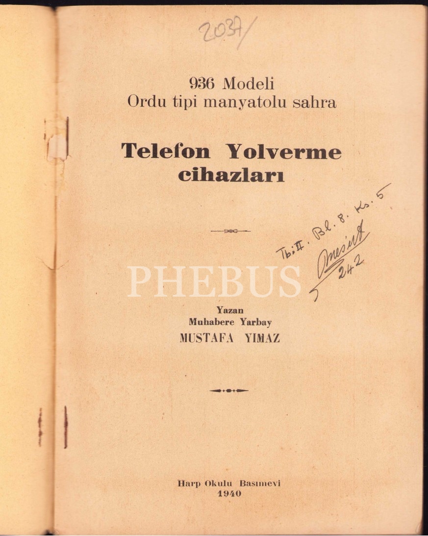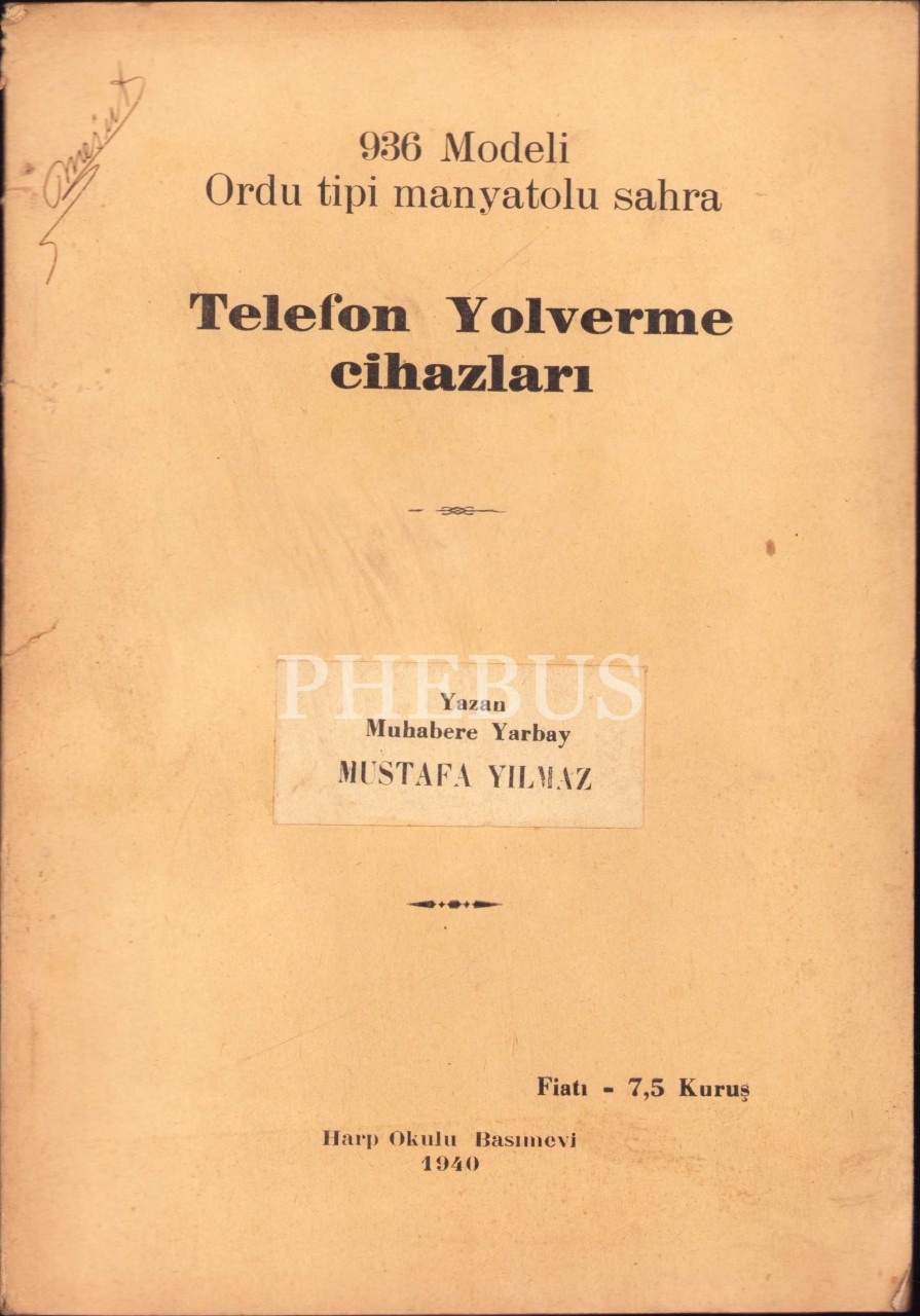 936 Modeli Ordu Tipi Manyatolu Sahra Telefon Yolverme Cihazları, Muhabere Yarbay Mustafa Yılmaz, Harp Okulu Basımevi 1940, 42 sayfa, 17x25 cm