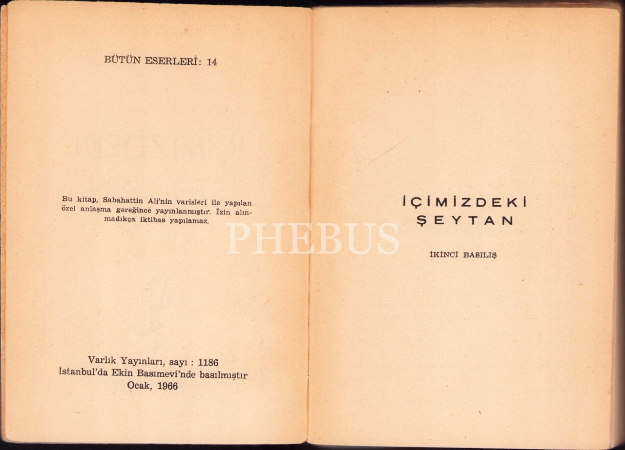 Sabahattin Ali Bütün Eserleri: 6 - İçimizdeki Şeytan, Varlık Yayınları, Ocak 1966