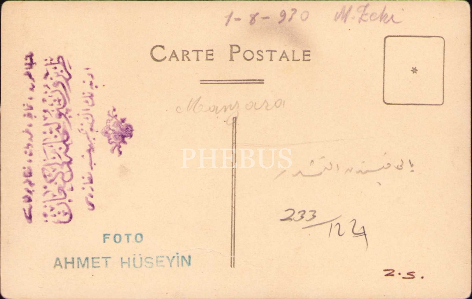 Ünye'den kumsal ve kıyı manzarası ile hatıra fotoğrafı, arkası Osmanlıca yazılı