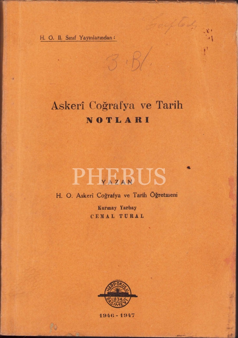 Askeri Coğrafya ve Tarih Notları, Yazan: H. O. Askeri Coğrafya ve Tarih Öğretmeni Kurmay Yarbay Cemal Tural, Harp Okulu Basımevi, 1946-1947, 380 sayfa, 17x24 cm