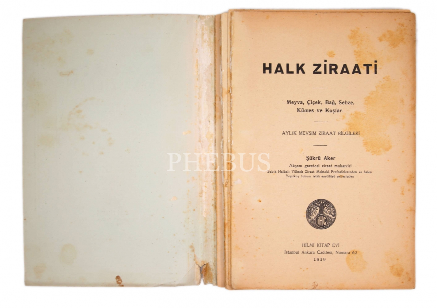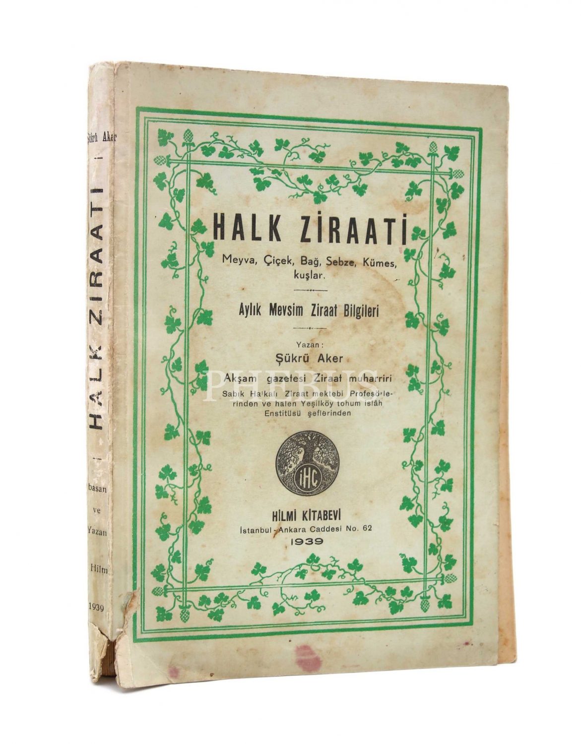 Halk Ziraati - Meyva, Çiçek, Bağ, Sebze, Kümes, Kuşlar (Aylık Mevsim Ziraat Bilgileri), Şükrü Aker, Hilmi Kitabevi 1939, 224 sayfa, 16x24 cm, sırtı haliyle
