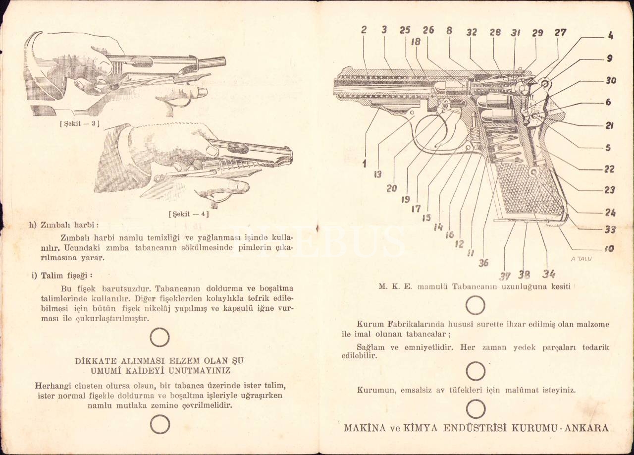 Makina ve Kimya Endüstrisi Kurumu tabanca kullanım kılavuzu, 21x45 cm, kenarları haliyle