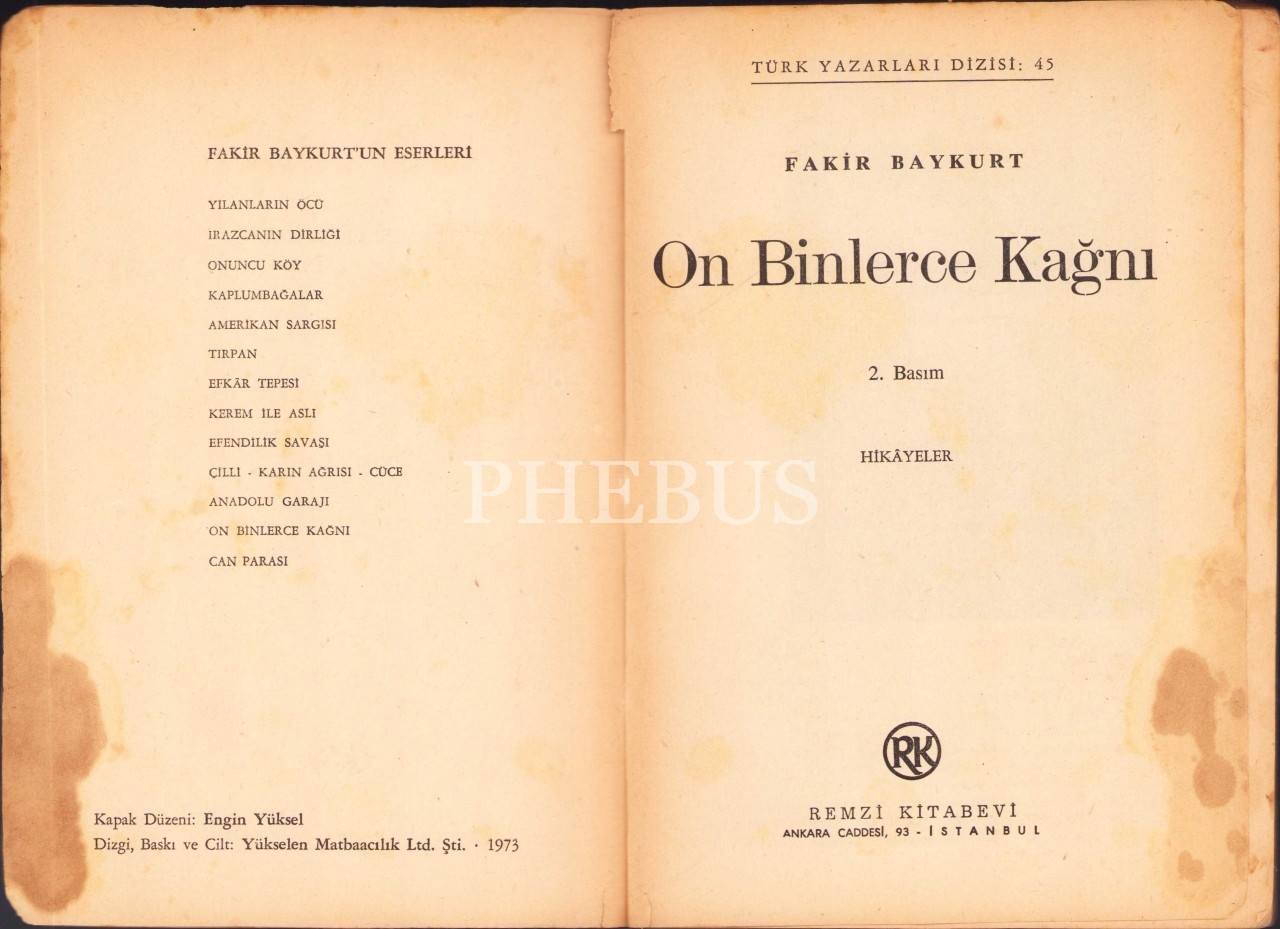 On Binlerce Kağnı, Fakir Baykurt, Remzi Kitabevi, 1973, haliyle