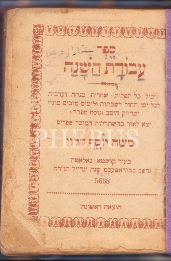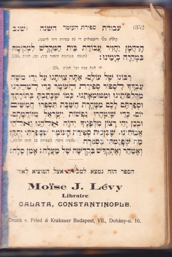 Constantinople baskı İbranice kitap, 352 sayfa, ''Moise J. Levy Libraire - Galata, Constantinople'', 12x16 cm