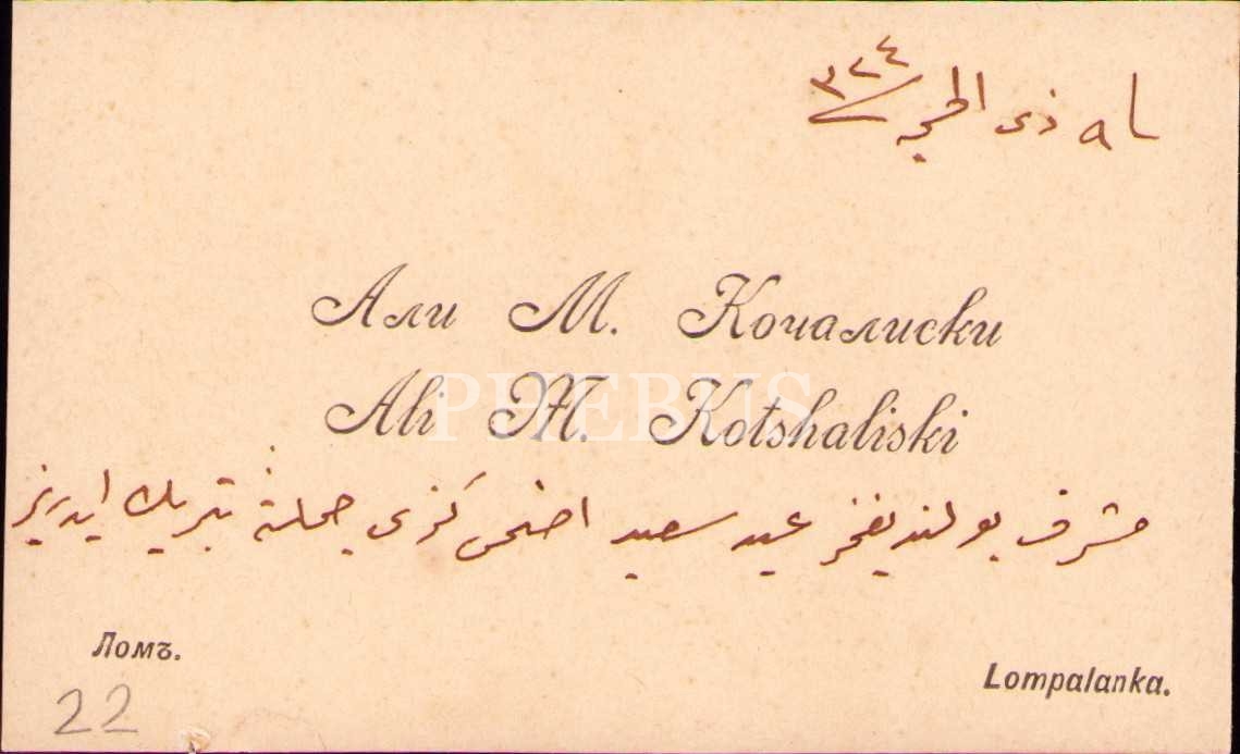 Kartvizit üzere Osmanlıca bayram tebriği, 1324 tarihli