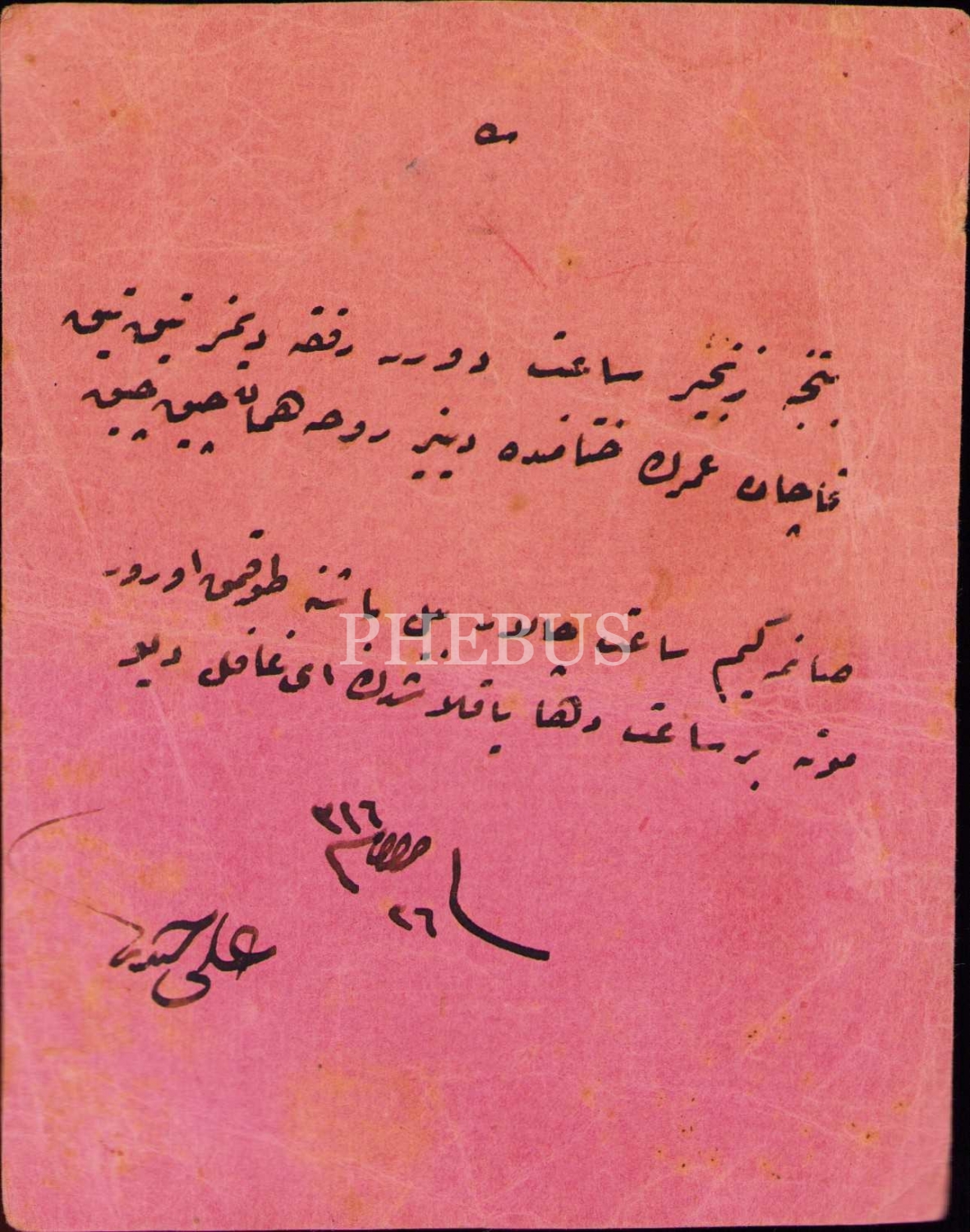 Ali Haydar Efendi imzalı ve 1316 tarihli Osmanlıca şiir, 11x14 cm