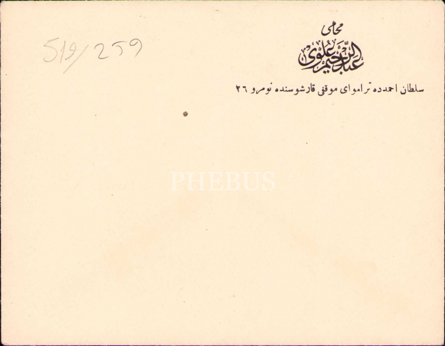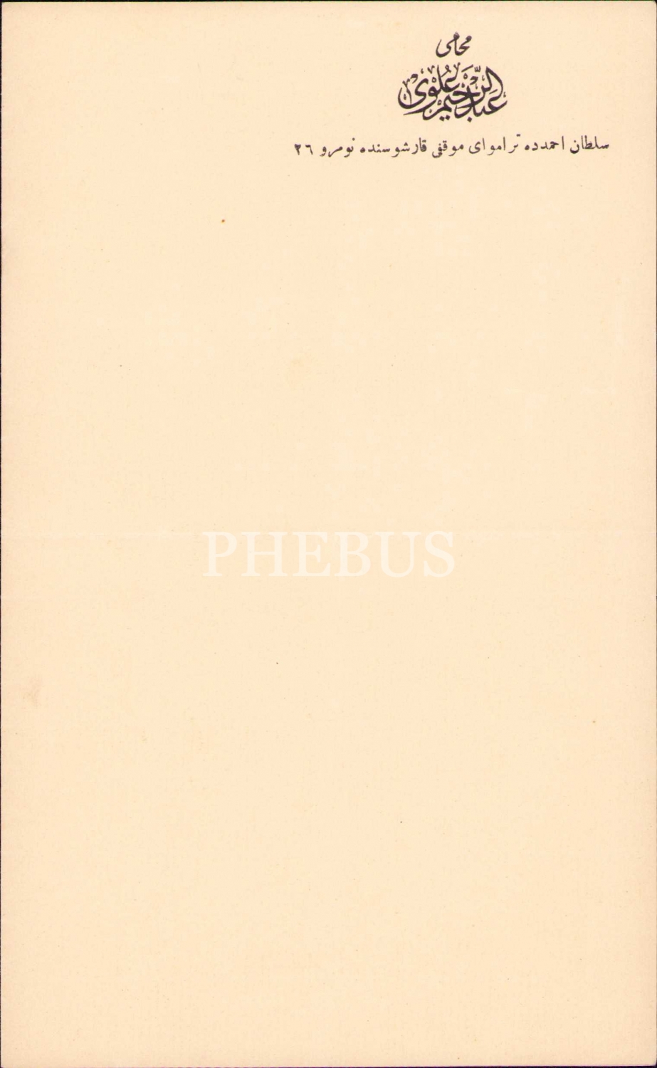 Osmanlıca Muhâmî [Avukat] Abdurrahim Ulvi antetli boş kağıt ve zarf, 13x21 cm