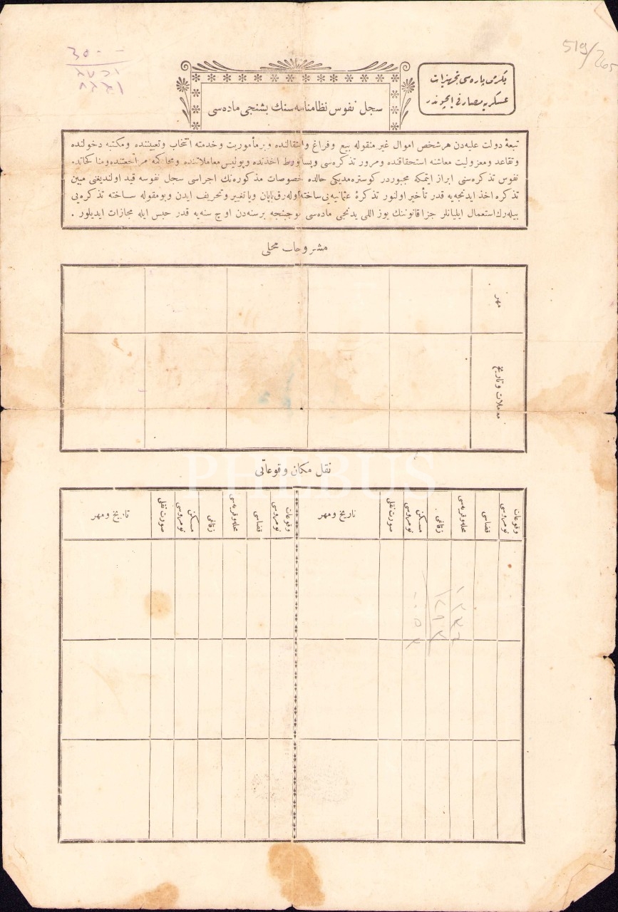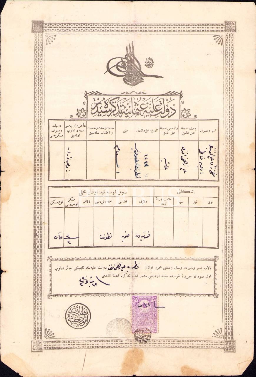 Osmanlıca 1320 tarihli nüfus tezkiresi, Trabzon, 23x34 cm, kenarları haliyle