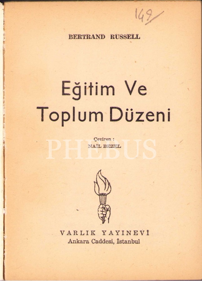 Eğitim ve Toplum Düzeni, Bertrand Russell, Çeviren: Nail Bezel, Varlık Yayınları, Nisan 1969
