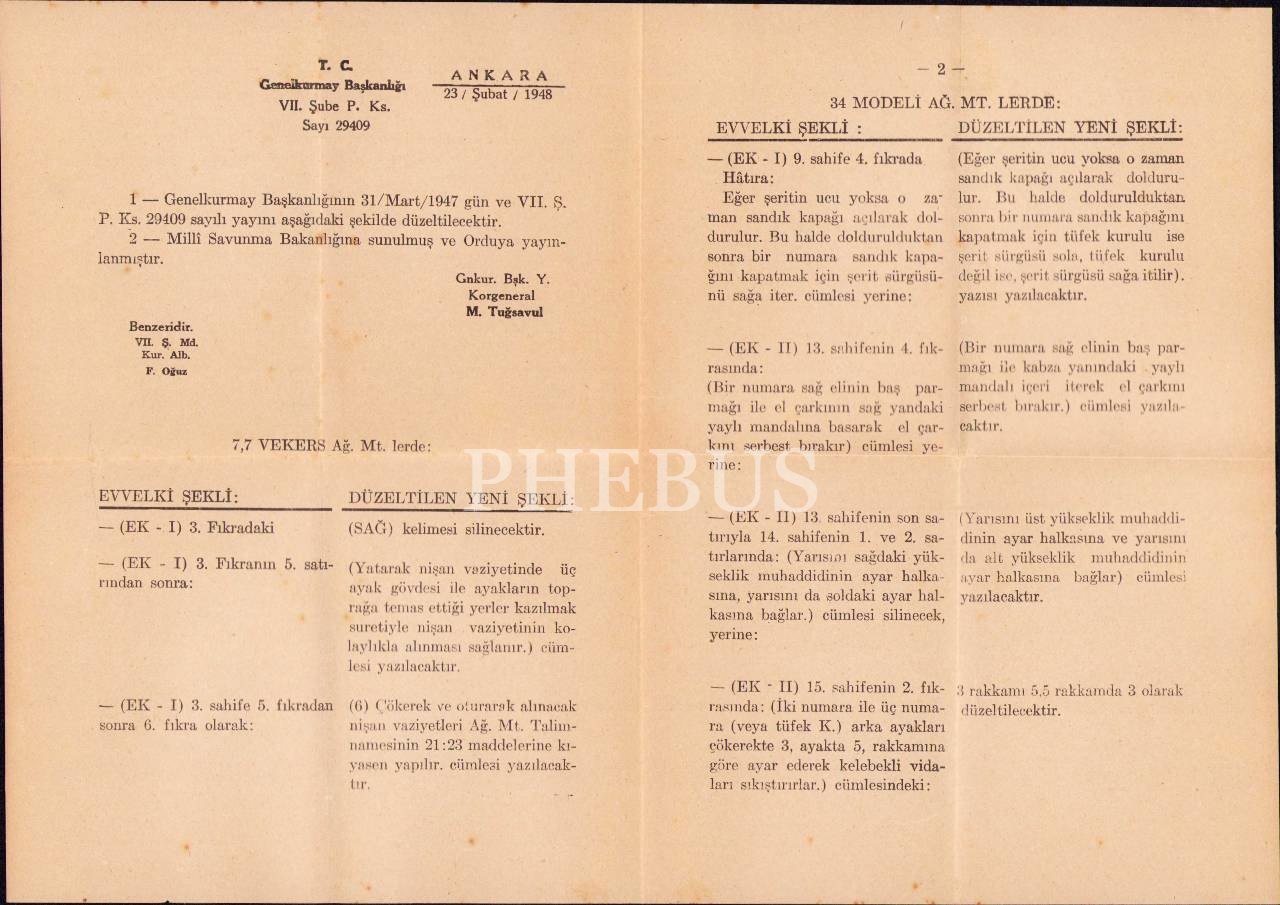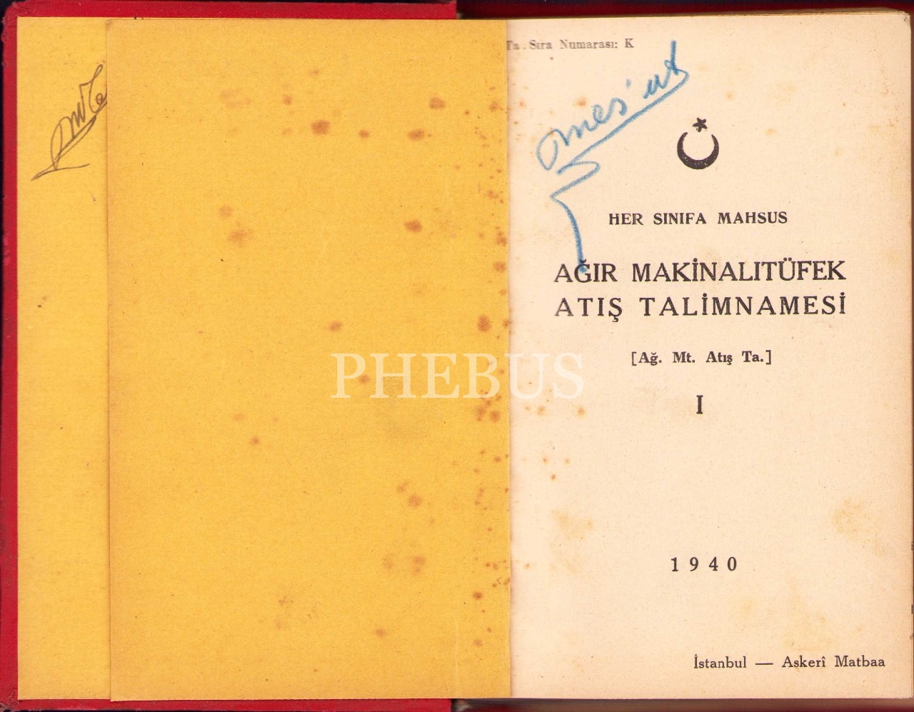 Her Sınıfa Mahsus Ağır Makinalı Tüfek Atış Talimnamesi, Askeri Matbaa - İstanbul 1940, 308 sayfa ve Her Sınıfa Mahsus Hava Hedeflerine Atış Talimnamesi, İstanbul 1939, 119 sayfa
