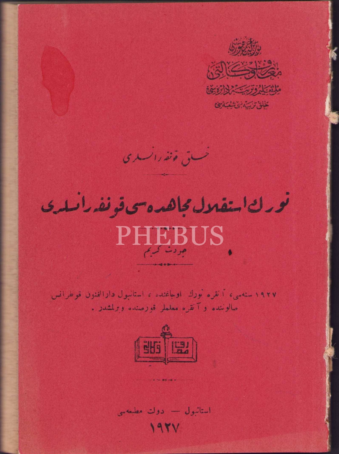 Osmanlıca Türk İstiklâl Mücâhedesi Konferansları, Cevdet Kerim, İmzalı, Devlet Matbaası, İstanbul 1927, 227 s., 12x18 cm, arka kapak kopuk haliyle