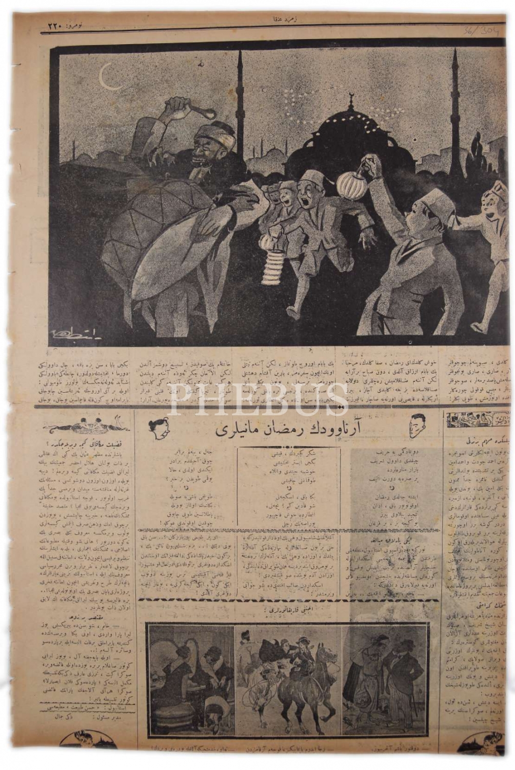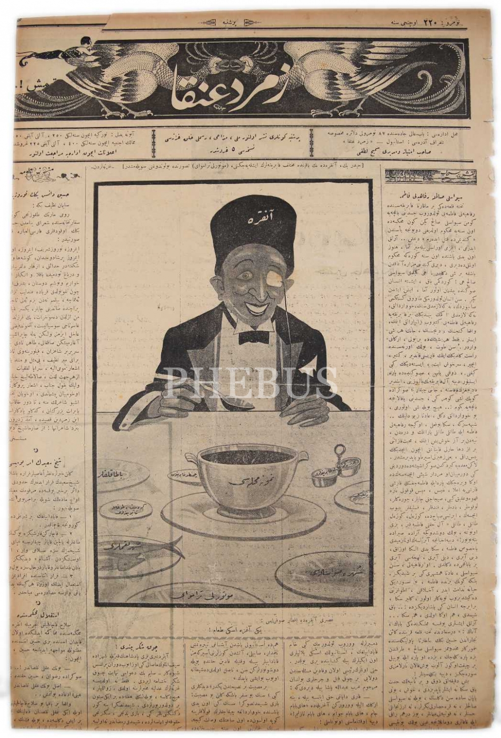 Osmanlıca Zümrüdüanka gazetesi, 220. sayı, 4 syf., 30x45 cm, altı ve bir kenarı kesik