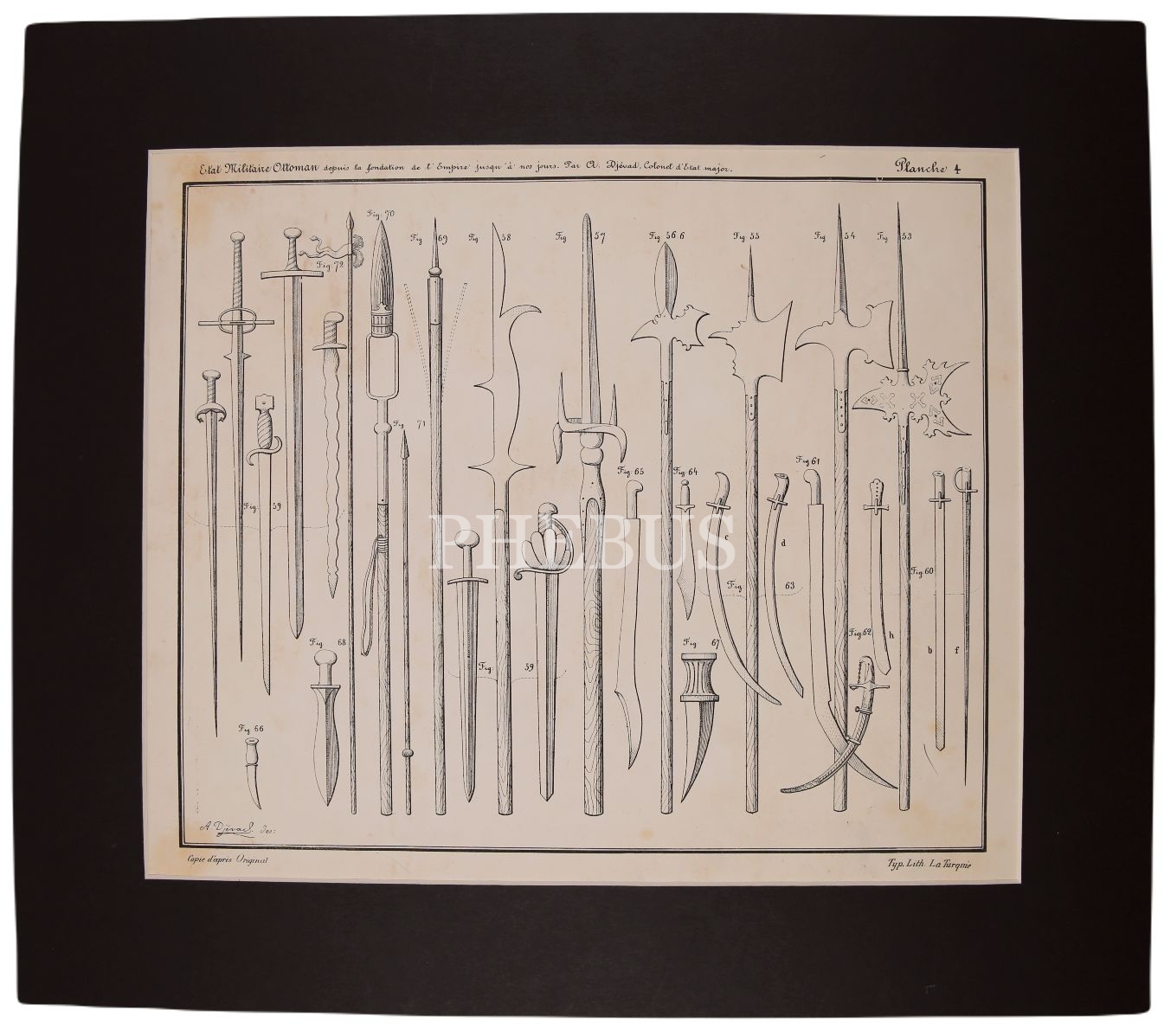 Osmanlı savaş aletleri, A. Djevad çizimi, 26x31 cm