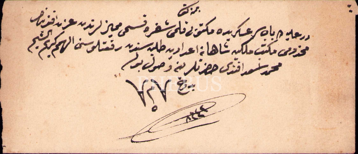 Osmanlıca Mekteb-i Mülkiye-i Şahane-i İdadiye talebesinden Mehmed Esad Efendi'ye gönderilen zarf, 8x19 cm