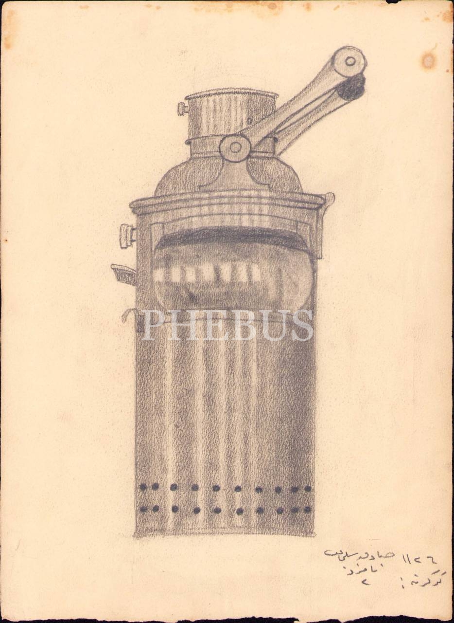 Osmanlıca Sadık Süleyman imzalı karakalem çizimi, 19x26 cm