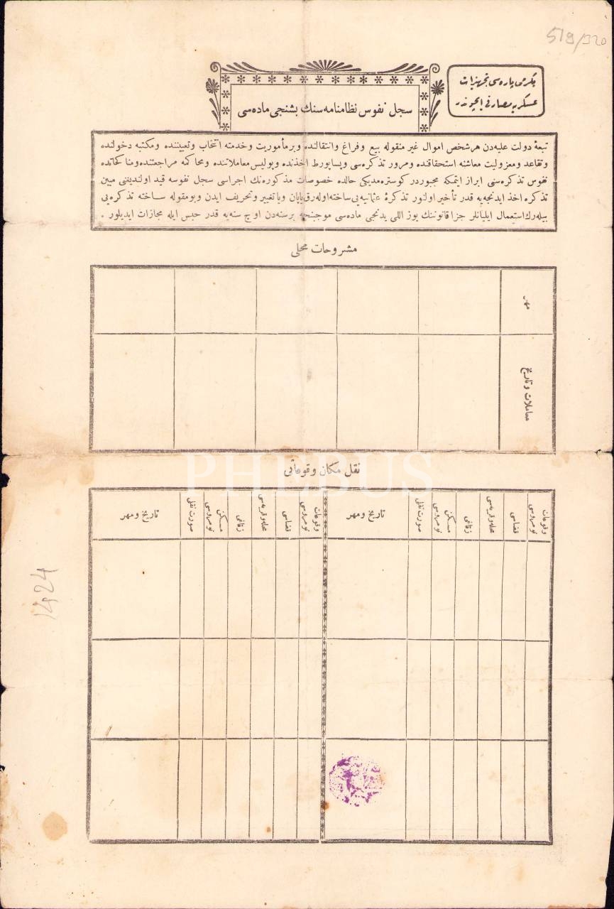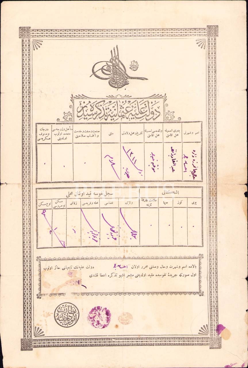 Osmanlıca nüfus tezkiresi, 23x35 cm, haliyle