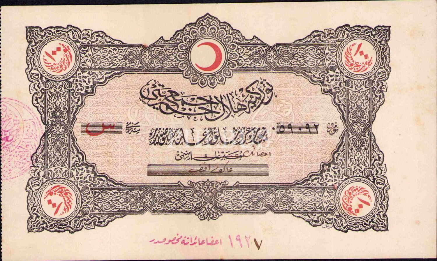 Osmanlıca Türkiye Cumhuriyeti Hilâl-i Ahmer Cemiyeti makbuzu, 12x21 cm