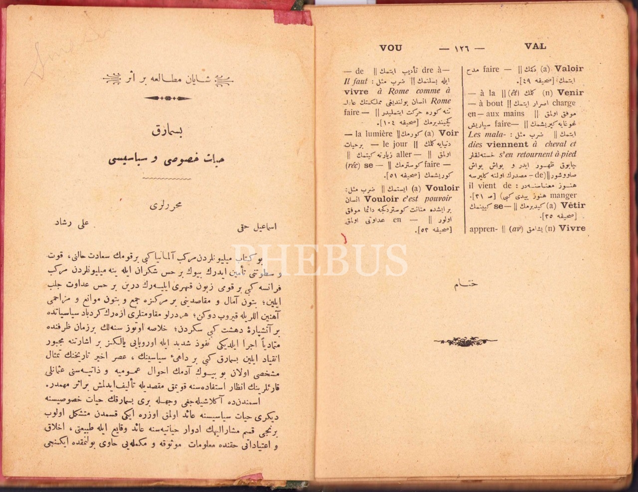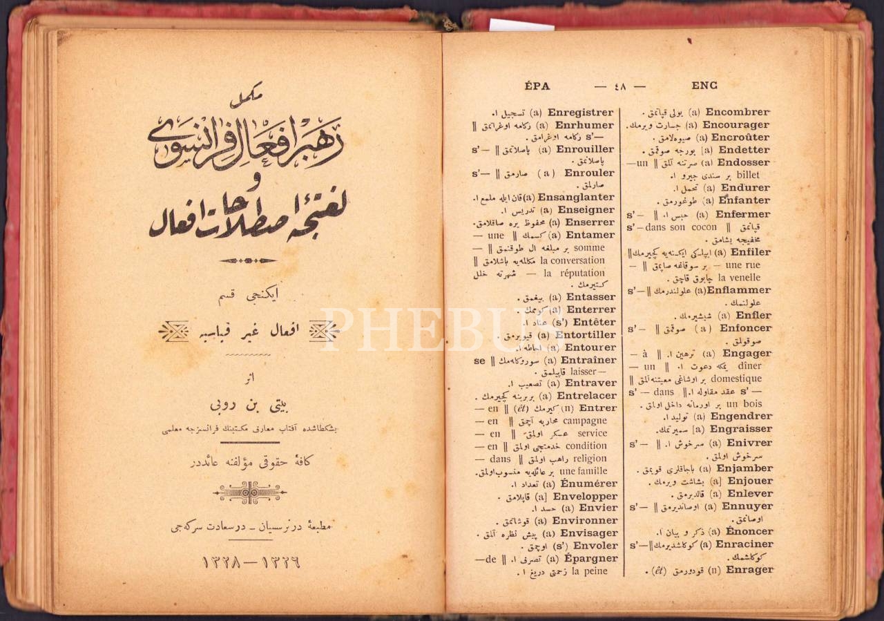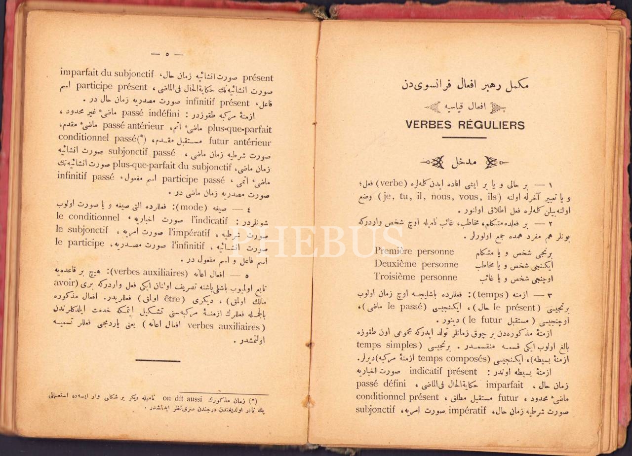Osmanlıca Rehber-i Ef'âl-i Fransevî [Fransızca Fiiller] ve Lügatçe-i Istılâhât-ı Ef'âl [1 ve 2. kısım], Der-Nersesyan Matbaası, İstanbul 1328, 12x18 cm, sayfa eksiklikleri bulunuyor