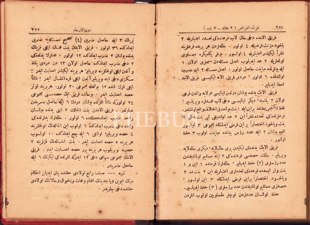Osmanlıca Ferâidü'l-Ferâiz, Mahmud Esad Seydişehrî, Hizmet Matbaası, İzmir 1311, 305 s., 13x19 cm