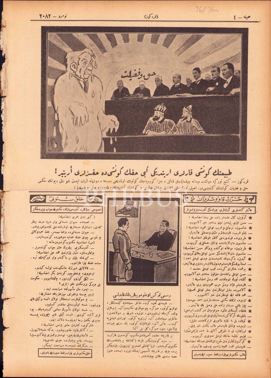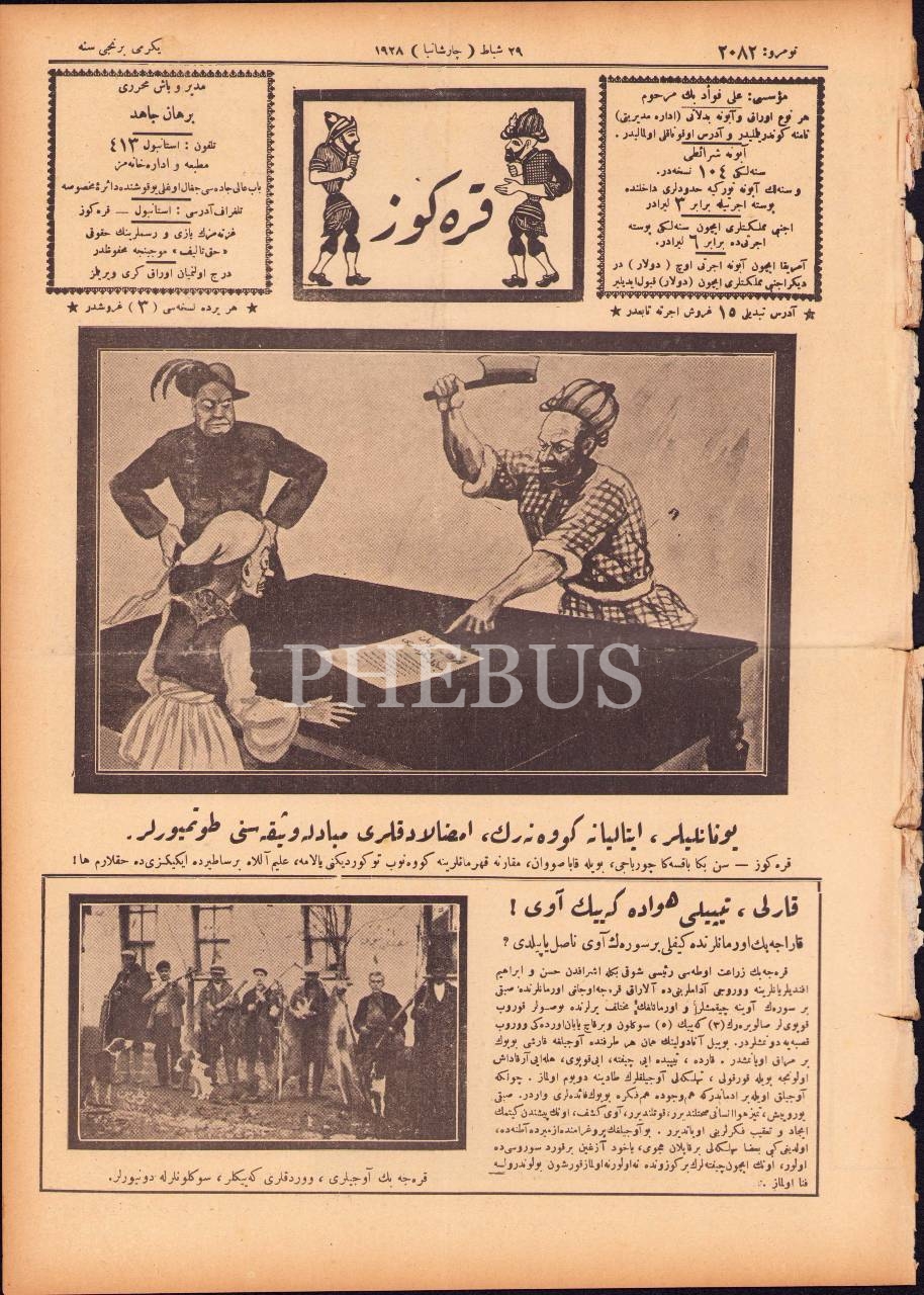 Osmanlıca Karagöz gazetesi, 29 Şubat 1928, 4 syf., 27x38 cm, ciltten çıkma