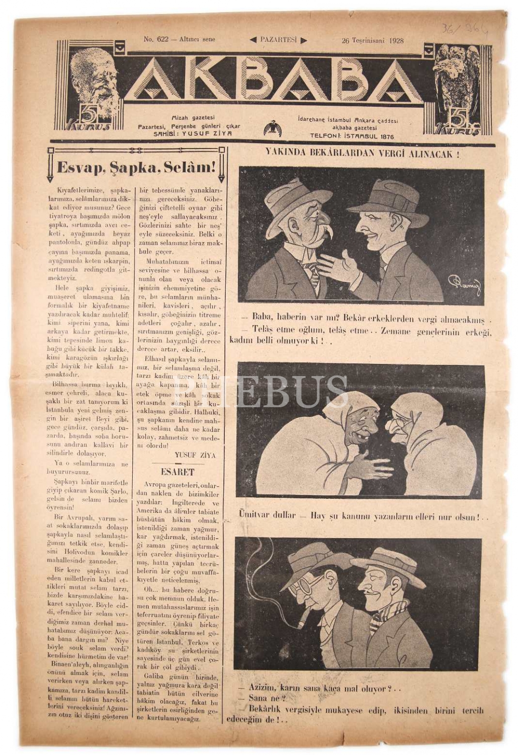 Akbaba gazetesi, 26 Teşrinisani 1928, 4 syf., 30x45 cm