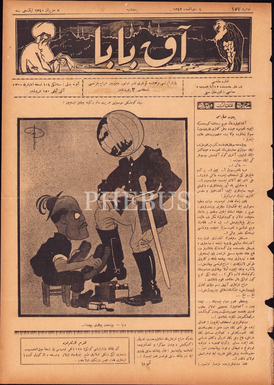 Osmanlıca Akbaba gazetesi, 5 Haziran 1340, 4 syf., 27x39 cm, ciltten kopma