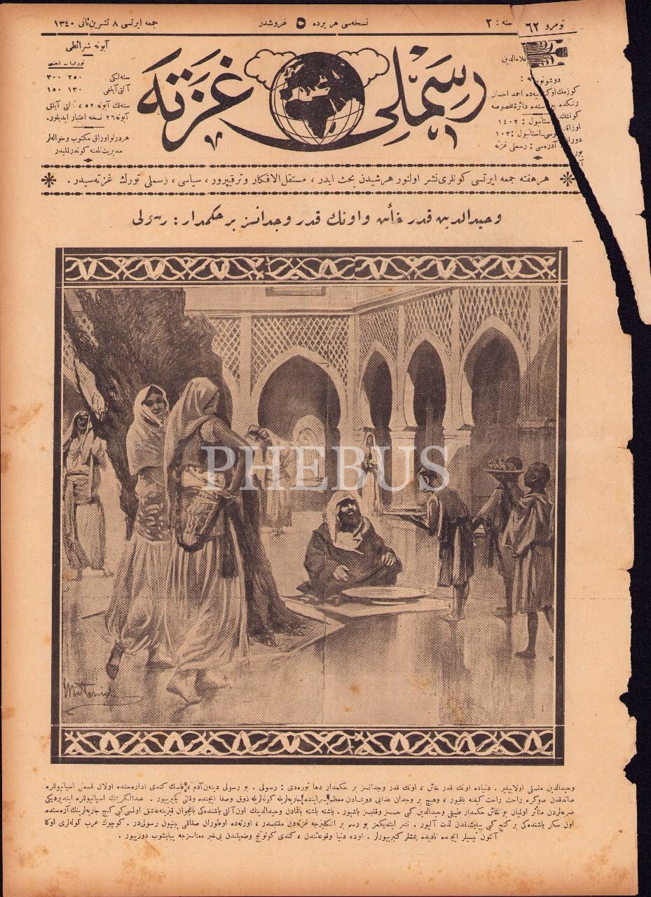 Osmanlıca Resimli Gazete, 8 Teşrinisani 1340, 6 syf., 27x39 cm, üst köşe yırtık haliyle