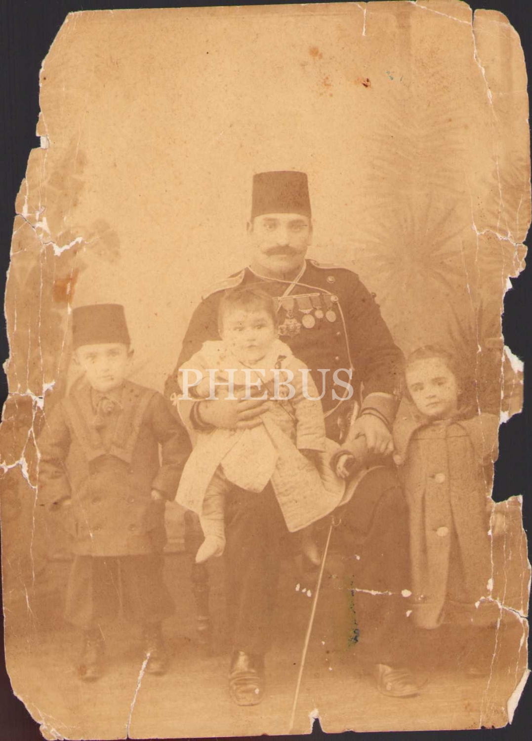 Madalyalı Osmanlı subayı ve çocuklar hatıra fotoğrafı, 10x14 cm, haliyle