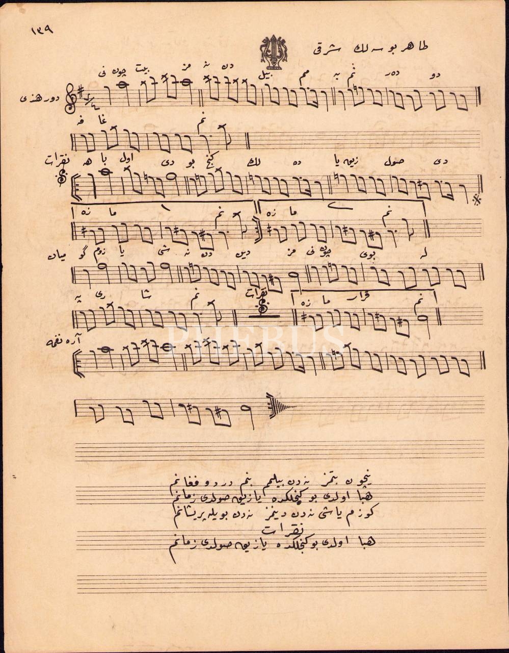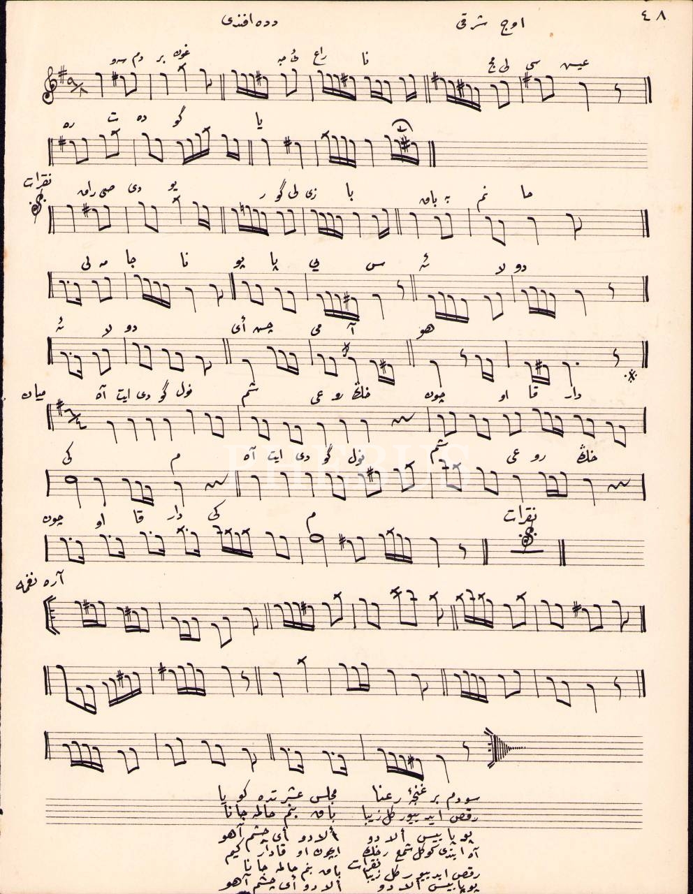 Osmanlıca klasik Türk musikisine dair el yazması notalar [Dede Efendi, Hanende Ali Efendi, Hafız Mehmed Efendi, Şevki Bey, Selanikli Ahmed Efendi gibi bestekârların eserleri]