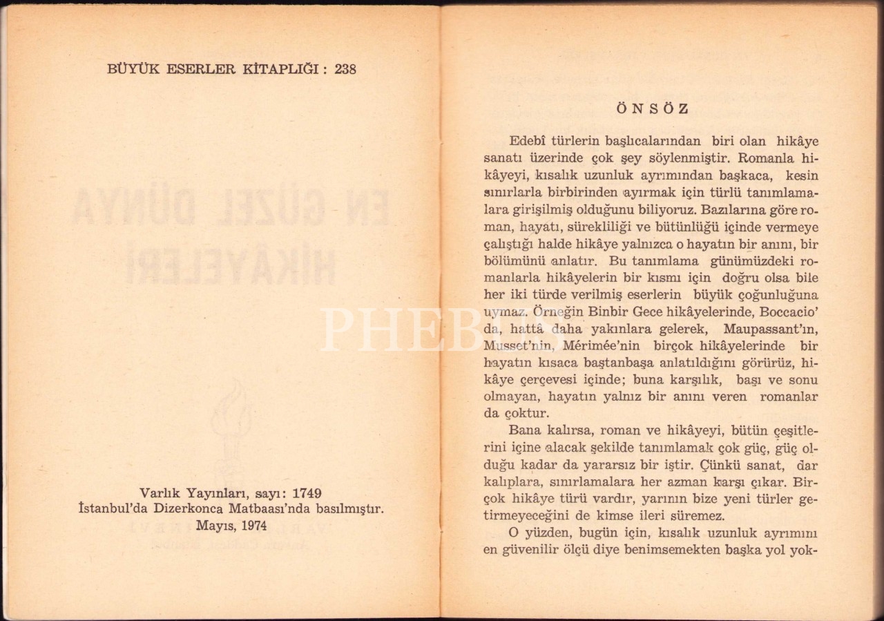 En Güzel Dünya Hikayeleri, Yaşar Nabi, 1974, Varlık Yayınları