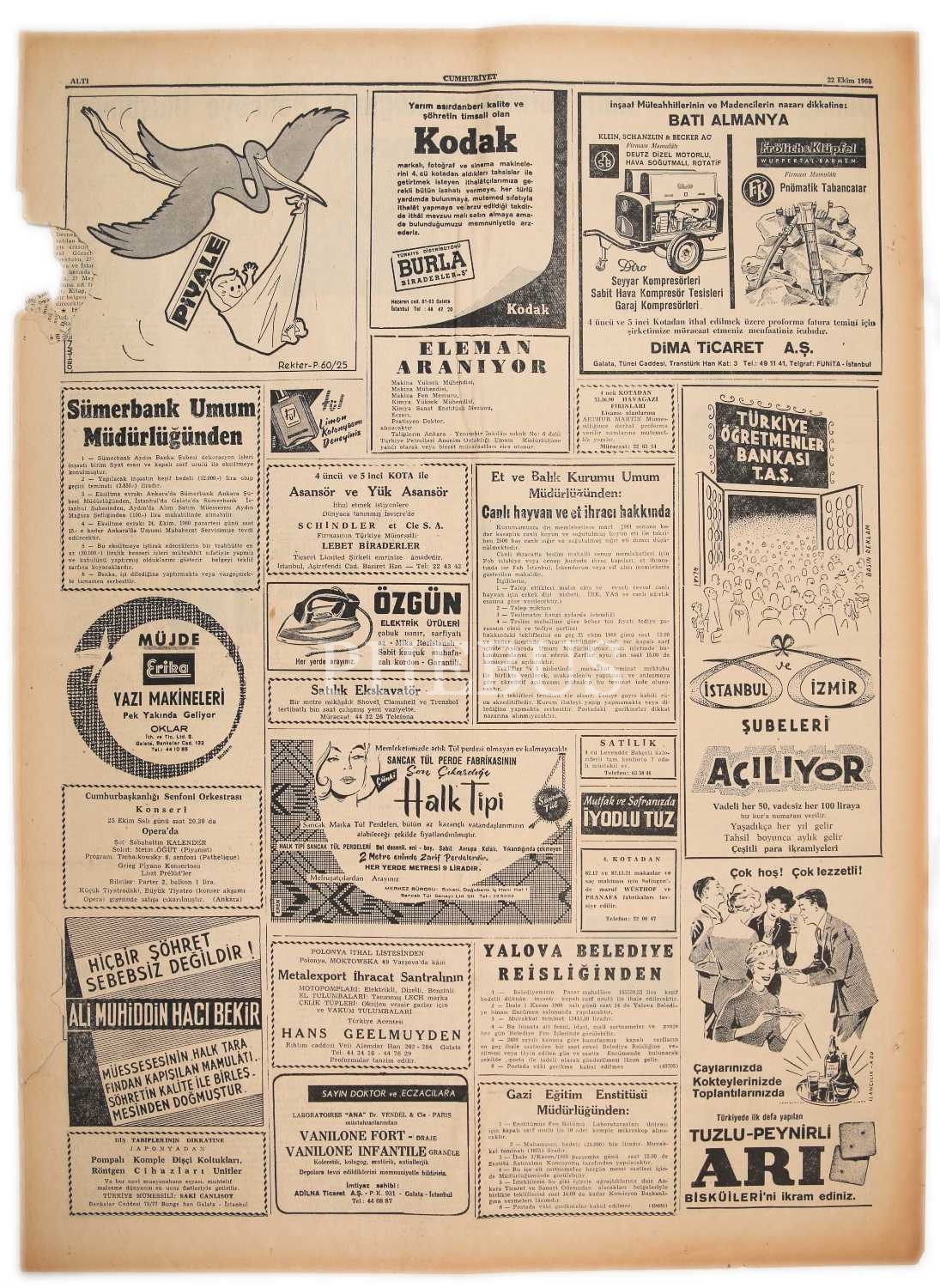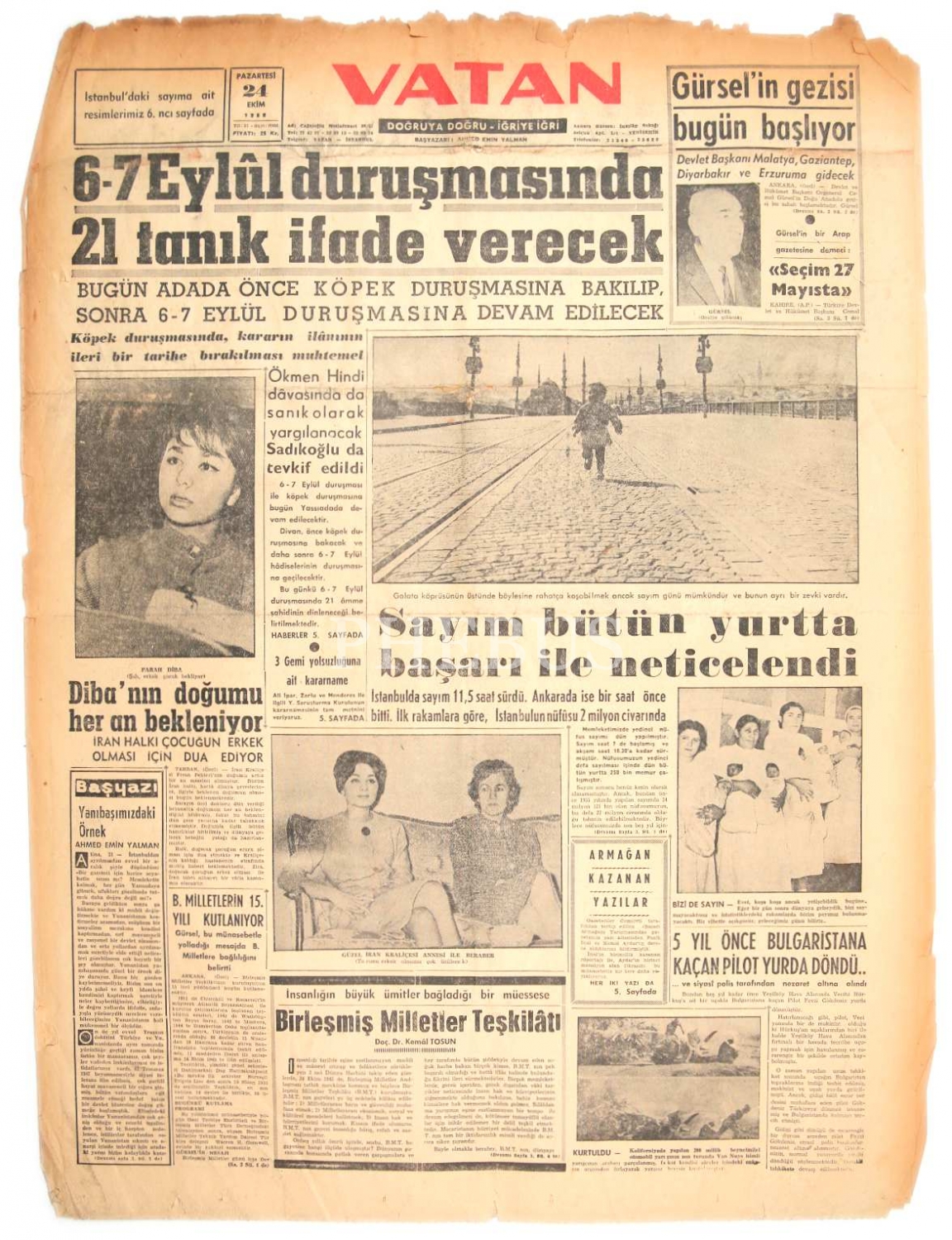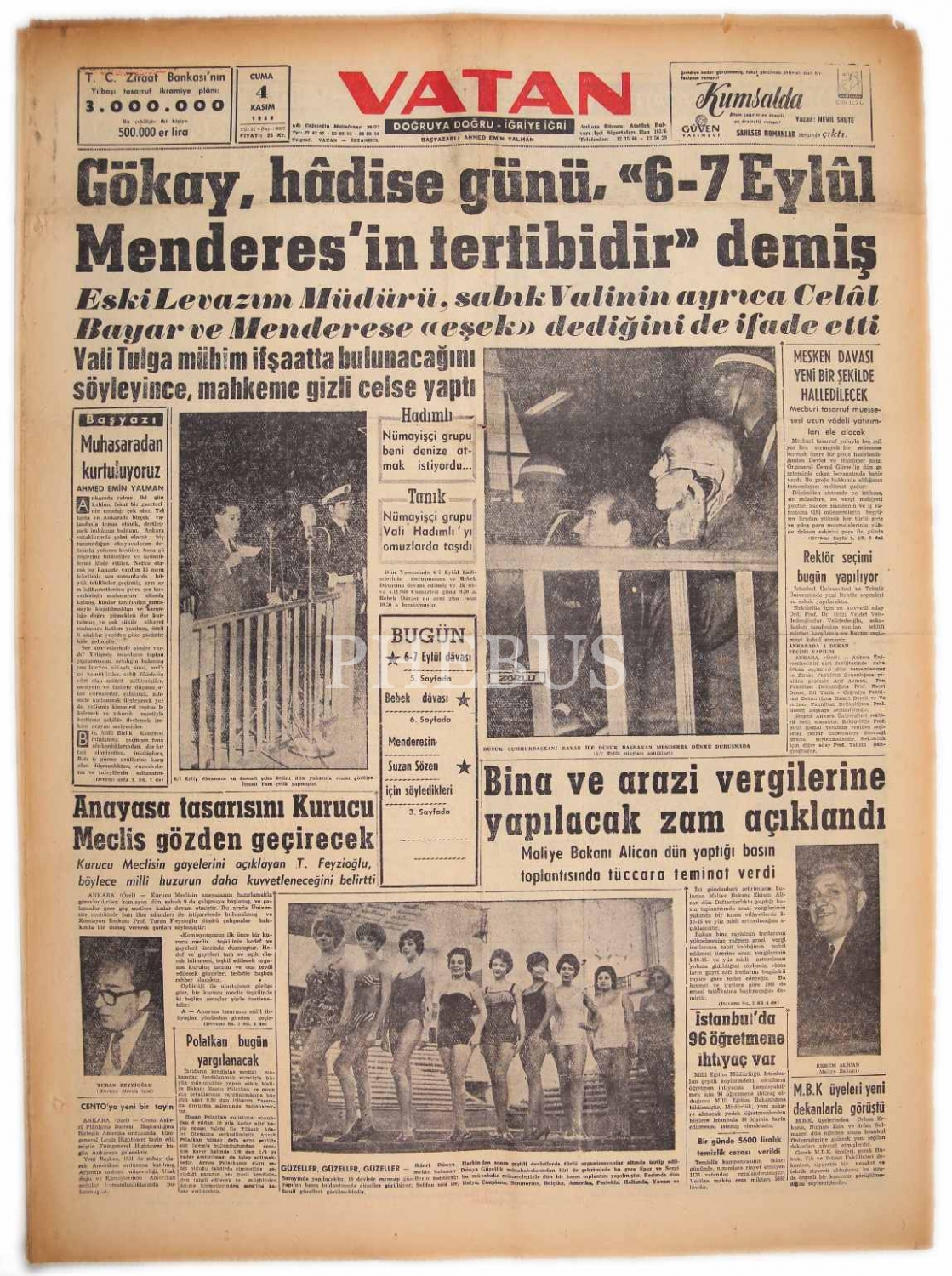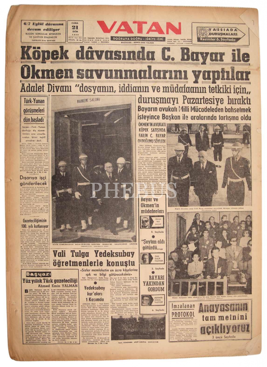6-7 Eylül davasına dair haberlerin yer aldığı 1960 tarihli 8 adet gazete, 42x48 cm