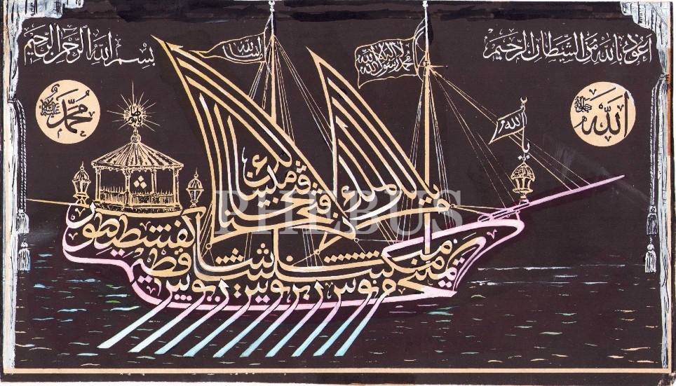 Matbu Kayık Formunda Sülüs Yazı, 31x18 cm
