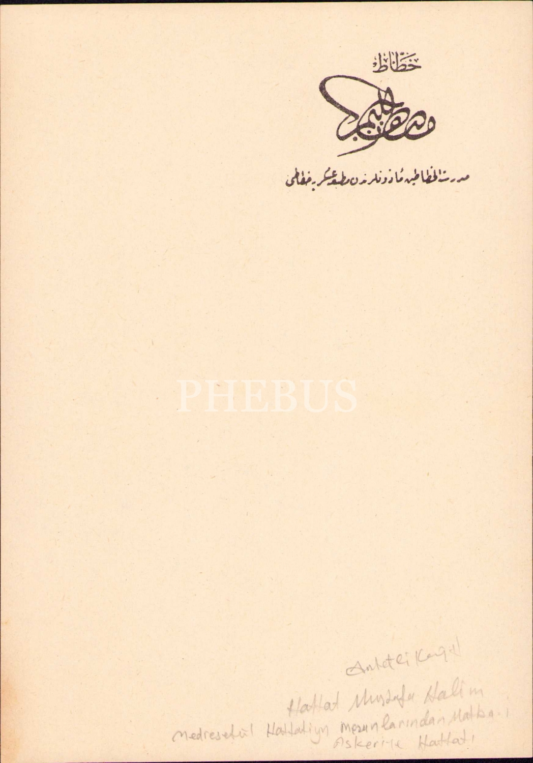 Osmanlıca Hattat Mustafa Halim [Özyazıcı] Antetli Kağıt, 15x21 cm