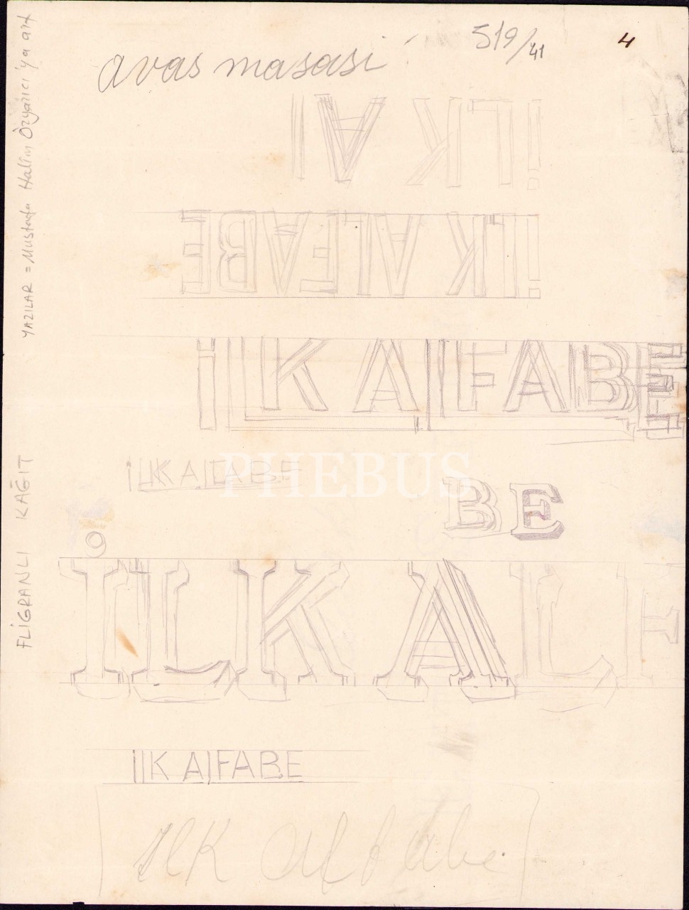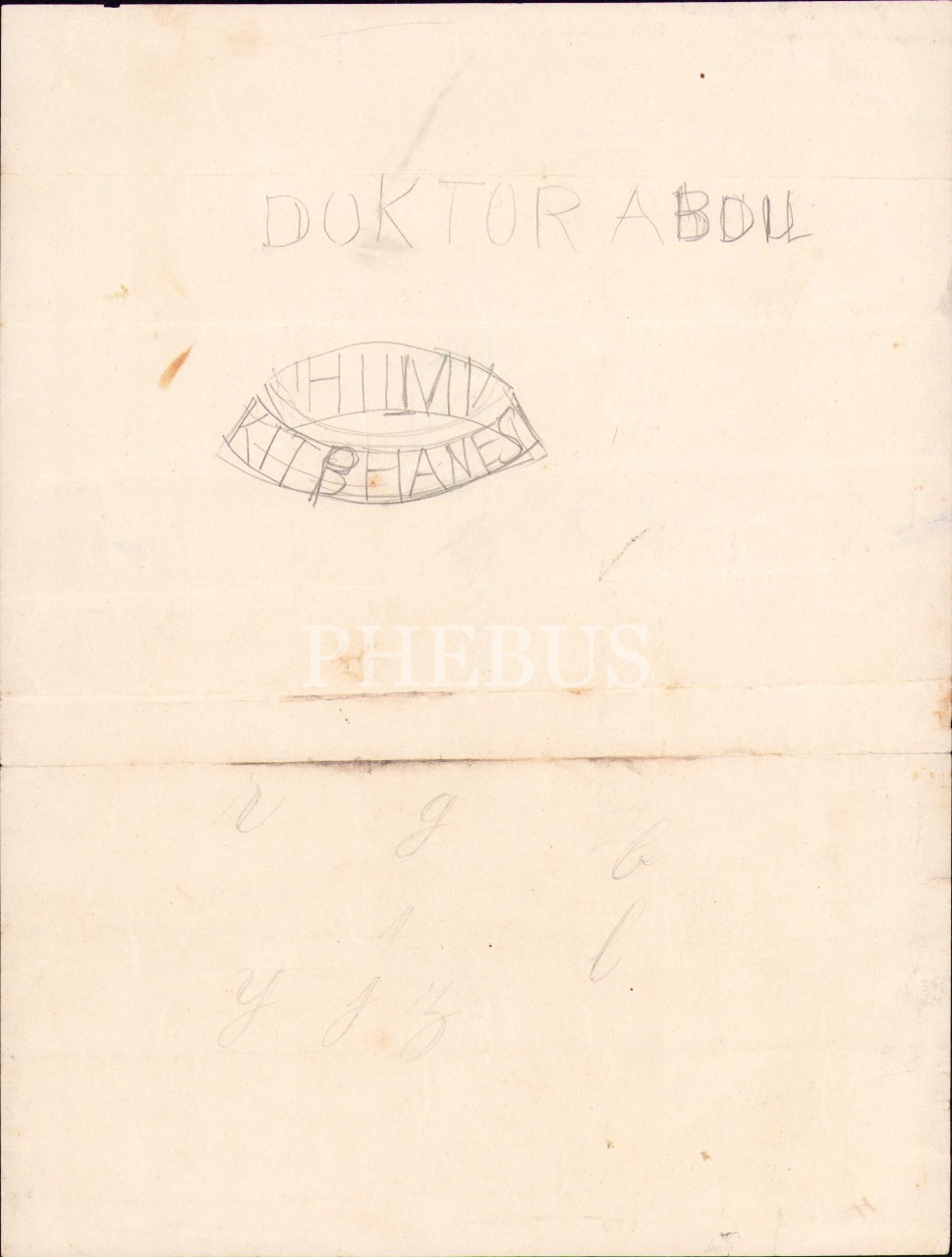 Hattat Halim Efendi Terekesinden Filigranlı Kağıda Latinize "İlk Alfabe" Eskizi, 23x30 cm