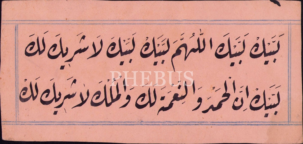 Celî Rik'a Yazı, "Lebbeyk, Allâhümme Lebbeyk, lebbeyke lâ şerîke leke lebbeyk", 33x16 cm