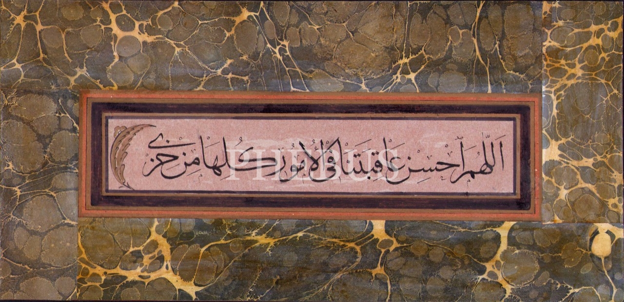 Sülüs Yazı, ebrulu ve tezhipli, 30x14 cm
